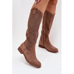 Dámské kozačky s vzorem na nízkém podpatku Hnědé model 22031864 - S.Barski