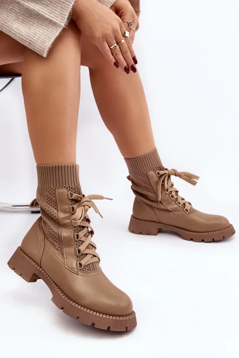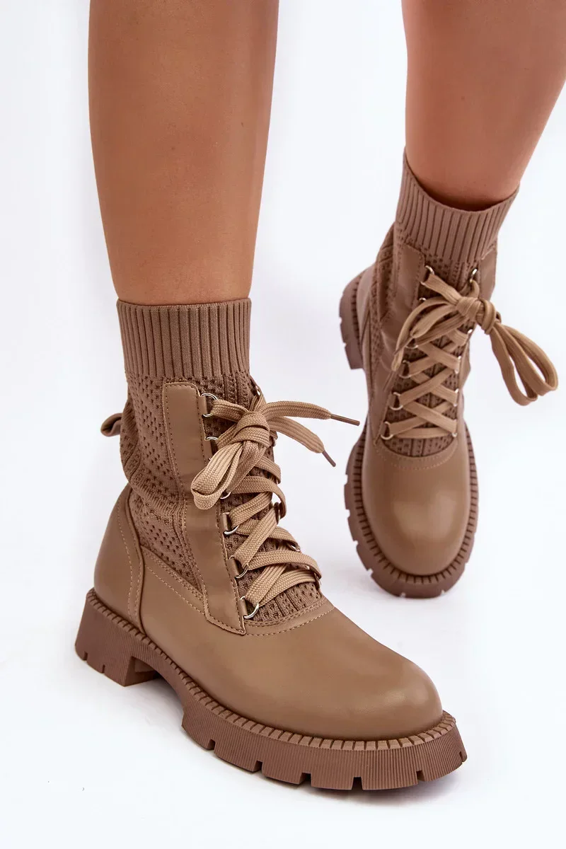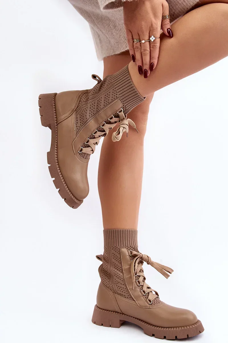 Dámské kozačky se šněrovací ponožkou, hnědá Gentiana