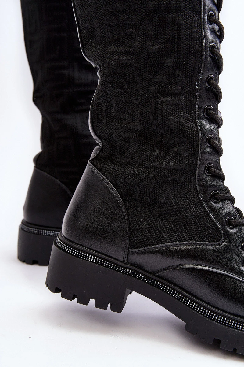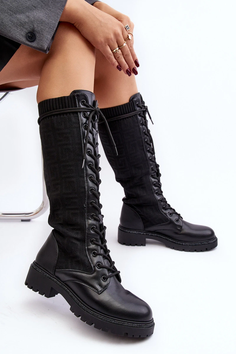 Dámské kozačky se šněrováním a elastickým svrškem černé Virxinia