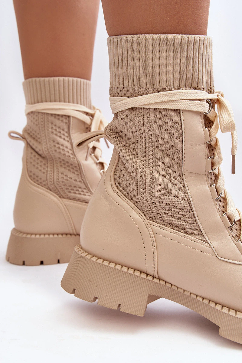 Dámské kozačky se šněrováním a ponožkou světle béžové Gentiana