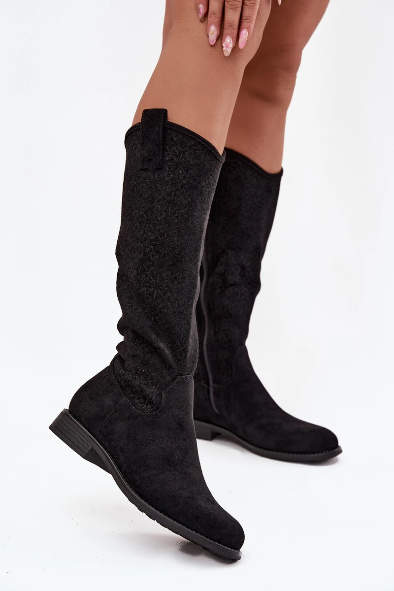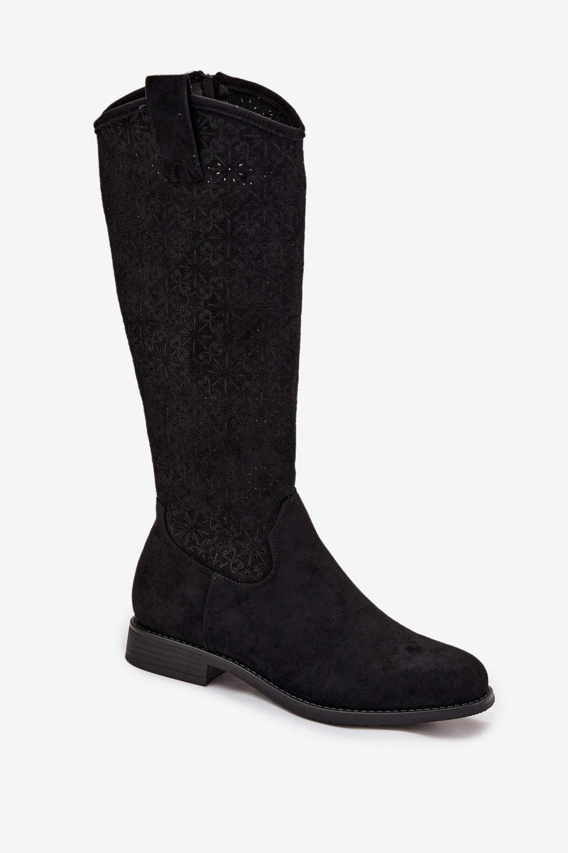 Dámské Kozačky Síťované Na Ploché Podpatky S Černé model 21713644 - S.Barski