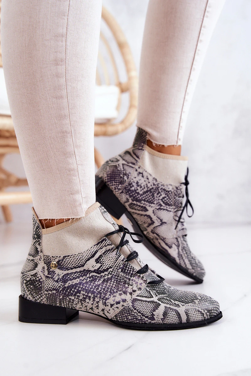Nyní jsou k dispozici extrémně stylové boty od Maciejky! Určitě upoutají pozornost svým neobvyklým designem. Kombinace několika druhů kůže s různými strukturami jim dodává skutečně elegantní a módní styl. Jemná plochá pata a horní šněrování. S takovými botami si jistě všimnete vy a vaše stylizace. Při výběru velikosti použijte tabulku velikostí.