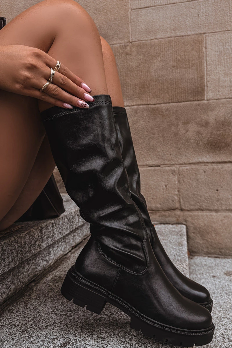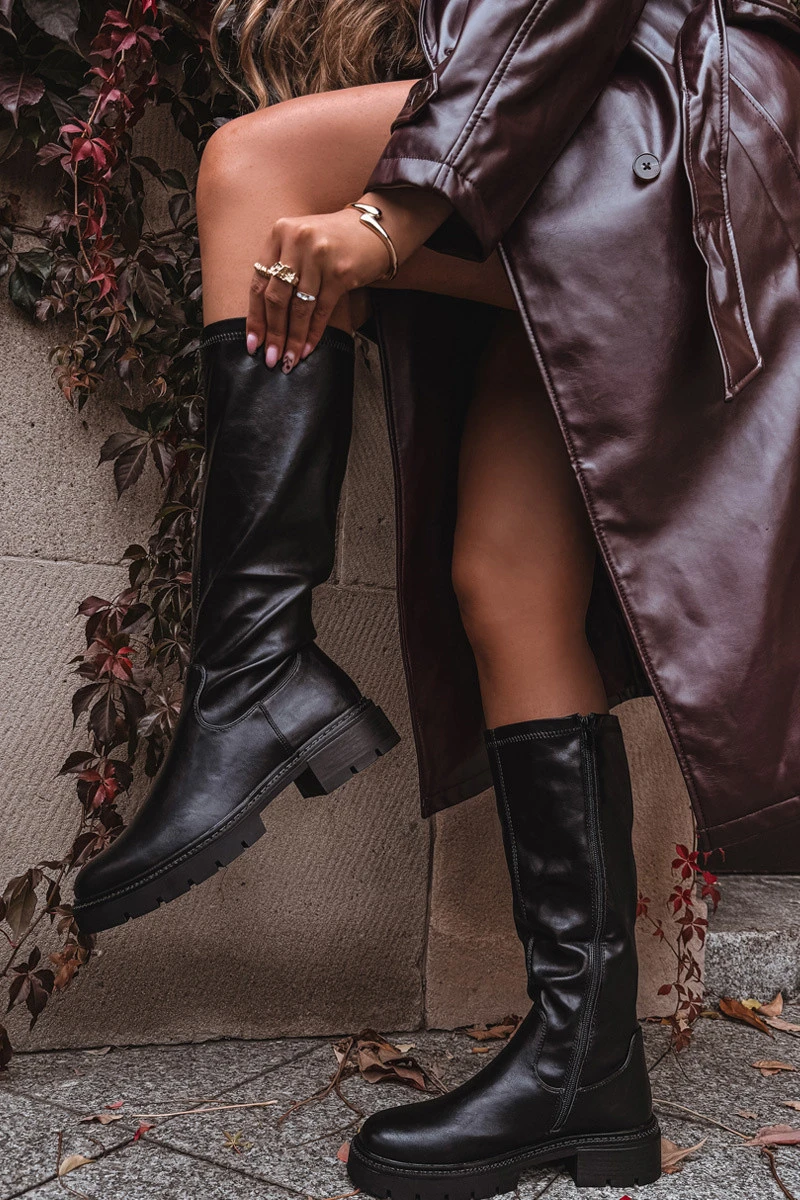Dámské kozačky vyrobené z eko kůže jsou klasickou volbou na chladnější dny. Model s přiléhavou horní částí krásně zvýrazní nohu a vytvoří ženskou a štíhlou siluetu. Vnitřek vyhřívaný dekou na úrovni nohy zajišťuje pohodlí a teplo při nošení. Praktické zapínání na zip usnadňuje obouvání a svlékání. Je to nadčasový střih, který skvěle ladí jak s šaty, tak s sukněmi a vytváří stylové outfity. Při výběru velikosti prosíme řídit se tabulkou velikostí. Při výběru velikosti se řiďte tabulkou velikostí.