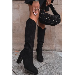 Dámské Kozaki Na Slupe Z Eko Zamszu Černé Prisca