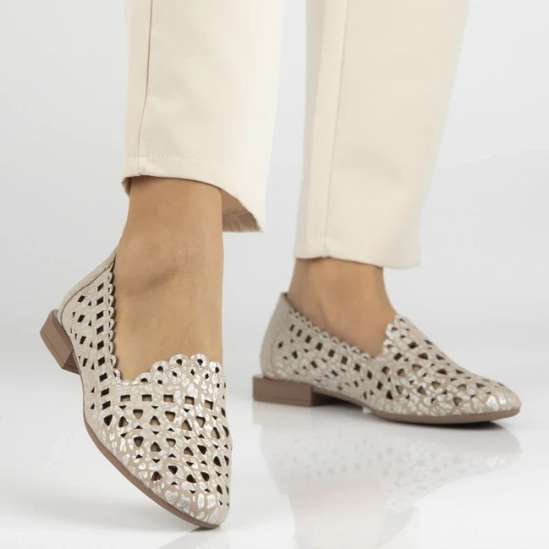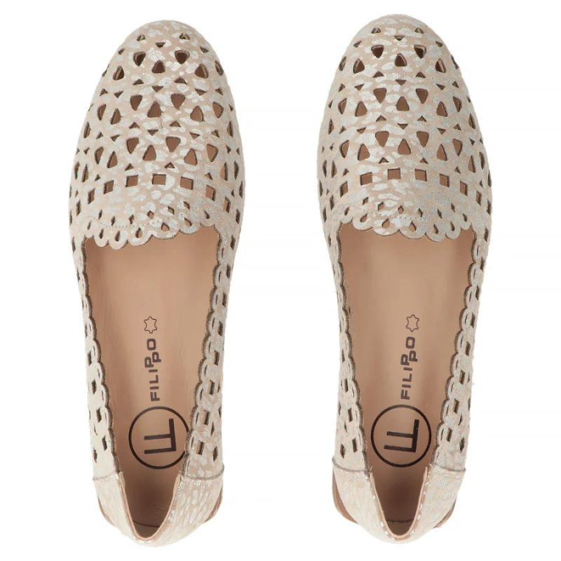 Dámské kožené ažurové polobotky béžové barvy Filippo model 22079006