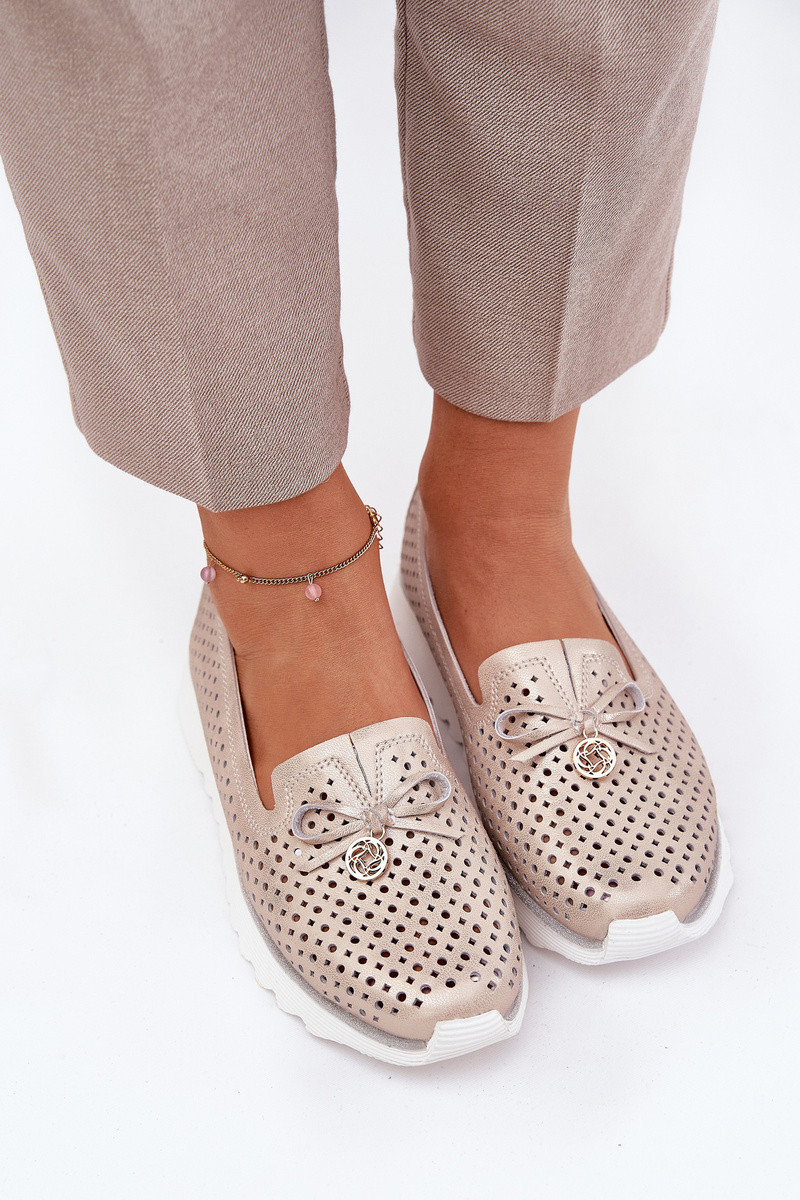 Dámské Kožené Ažurové Polobotky Z Přírodní Kůže D&A LR51-631 Zlaté