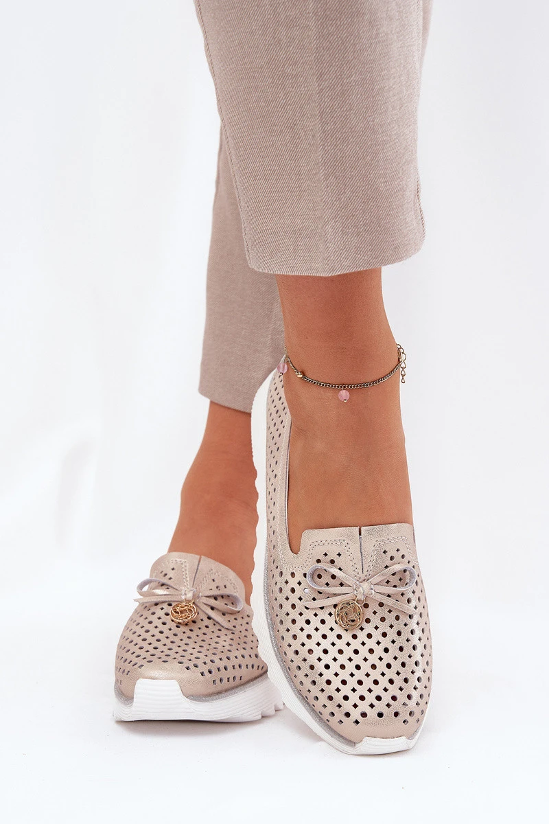 Dámské Kožené Ažurové Polobotky Z Přírodní Kůže D&A LR51-631 Zlaté