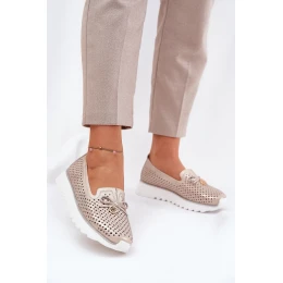 Dámské Kožené Ažurové Polobotky Z Přírodní Kůže D&A model 21690924 Zlaté - S.Barski