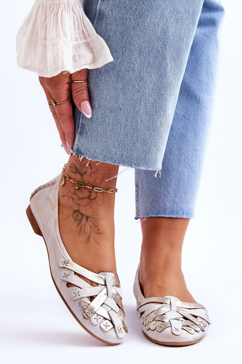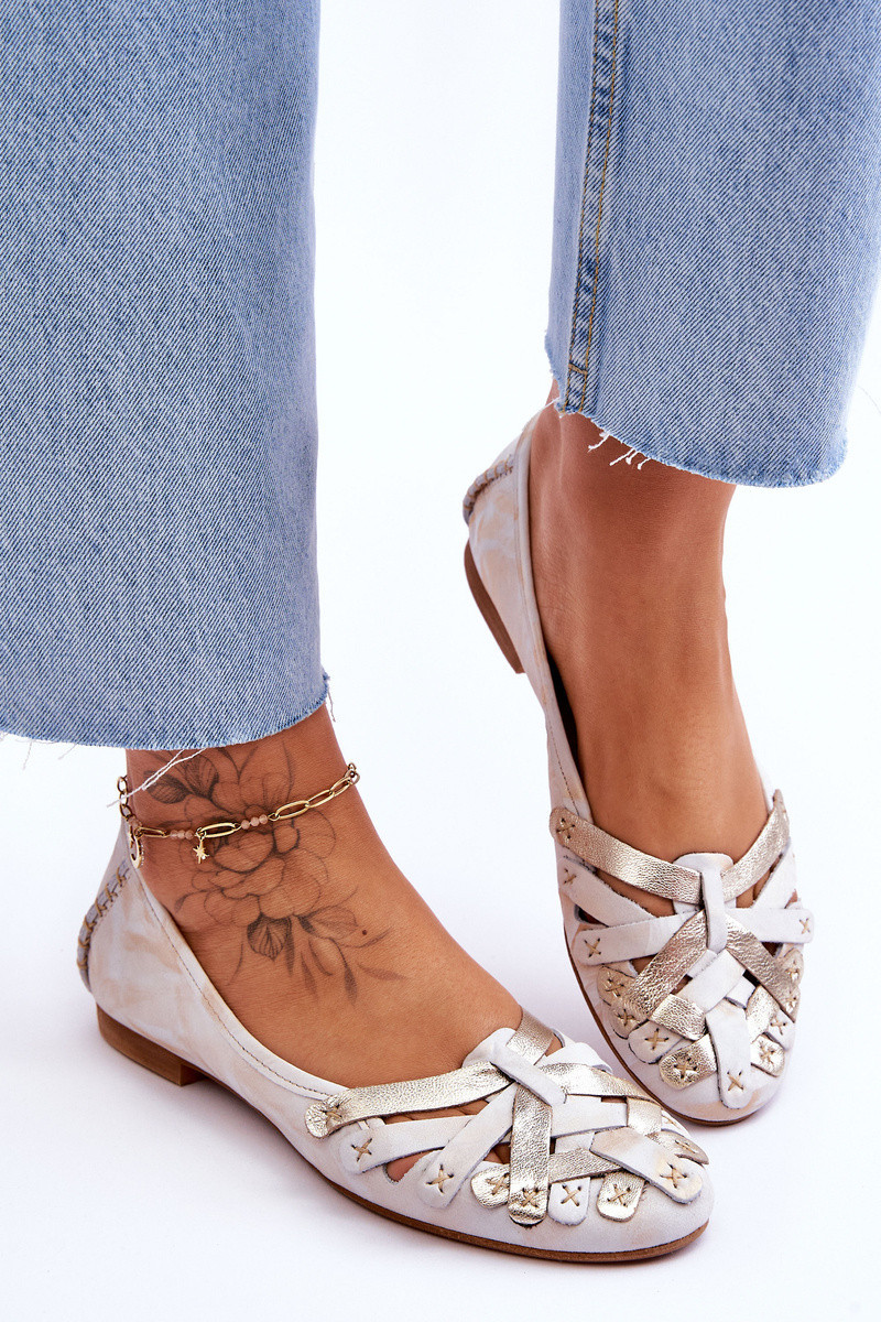 Dámské Kožené Baleríny model 21620670 Béžová a zlatá - Maciejka