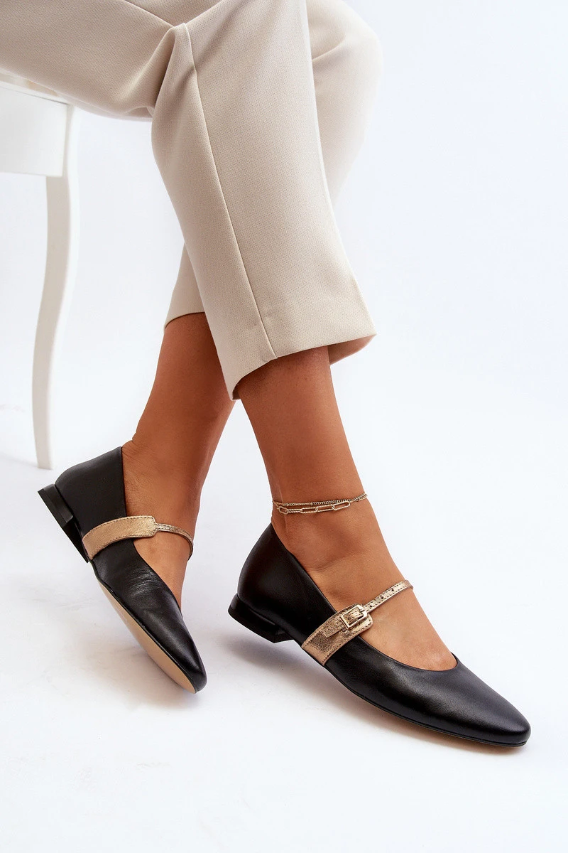 Dámské kožené baleríny na plochém podpatku Laura Messi 2774 černé