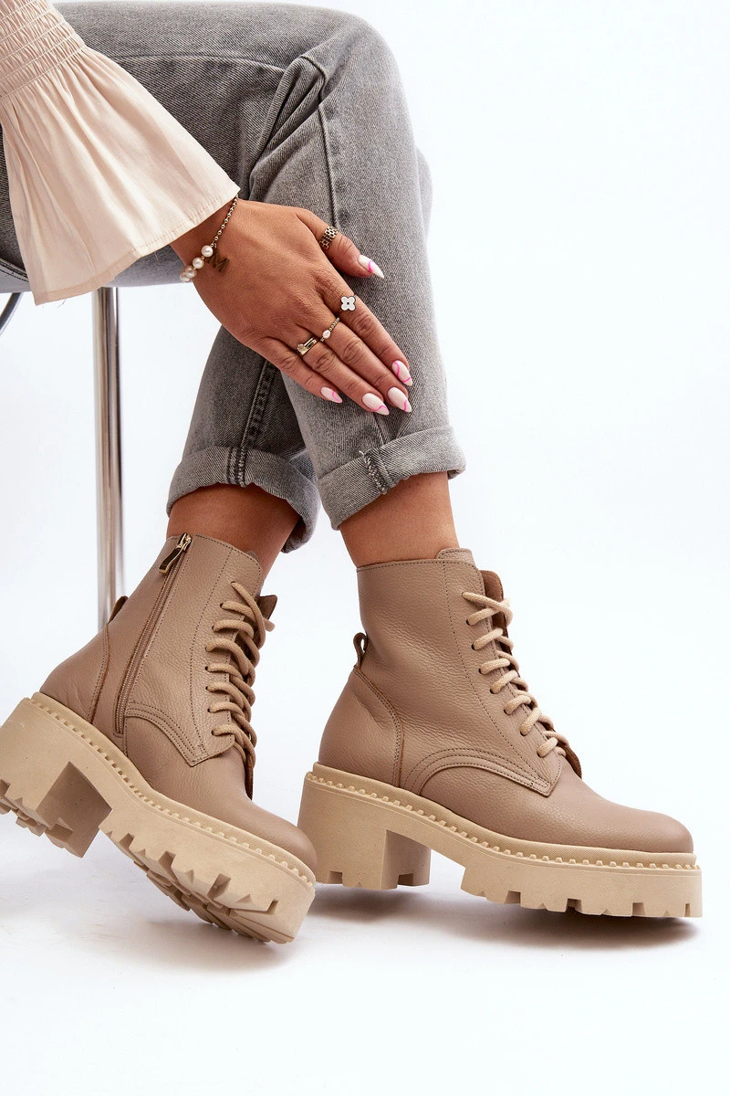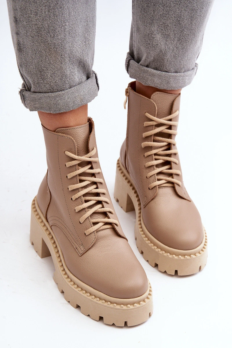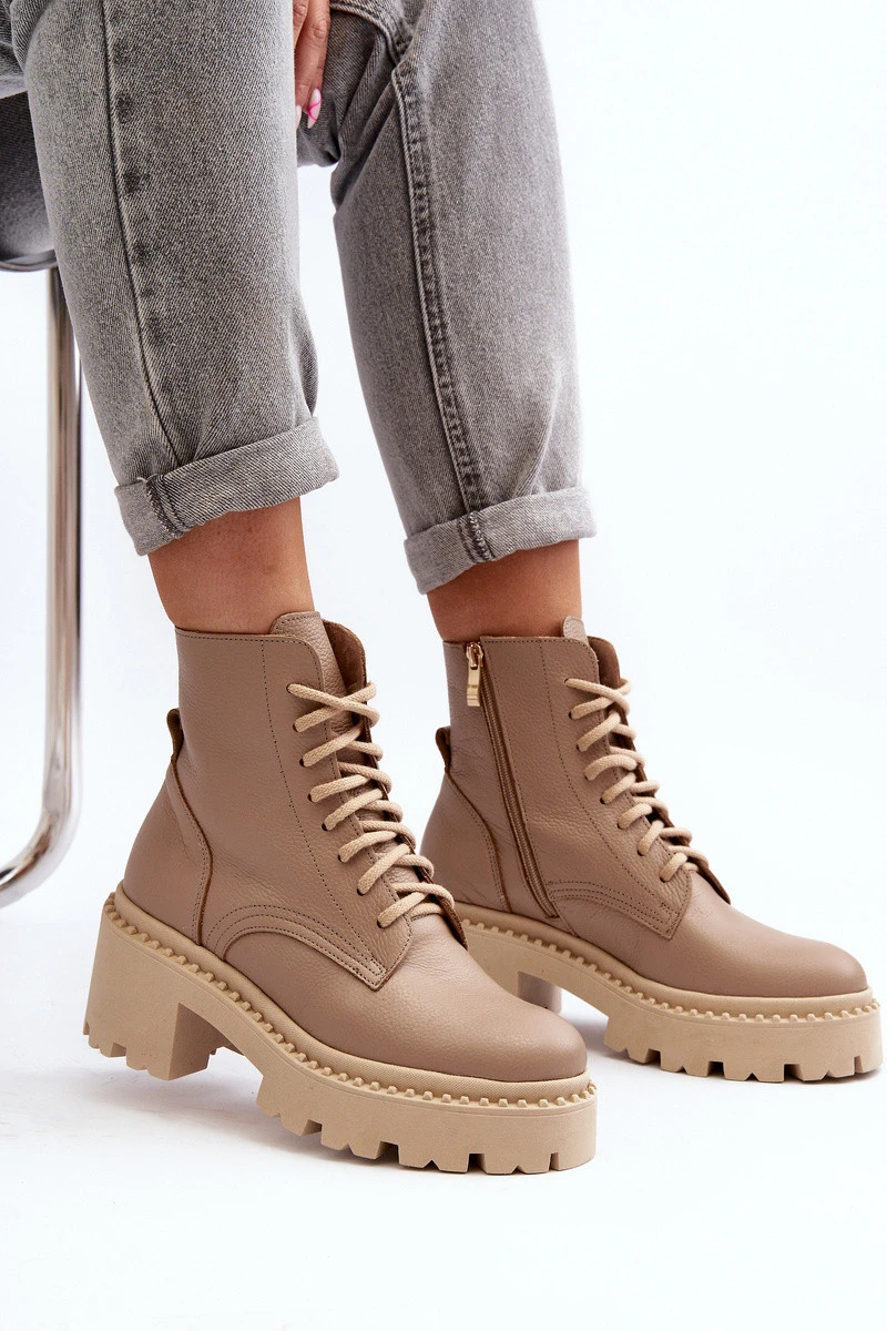 Dámské kožené botky na podpatku béžové model 21644578 - Zazoo