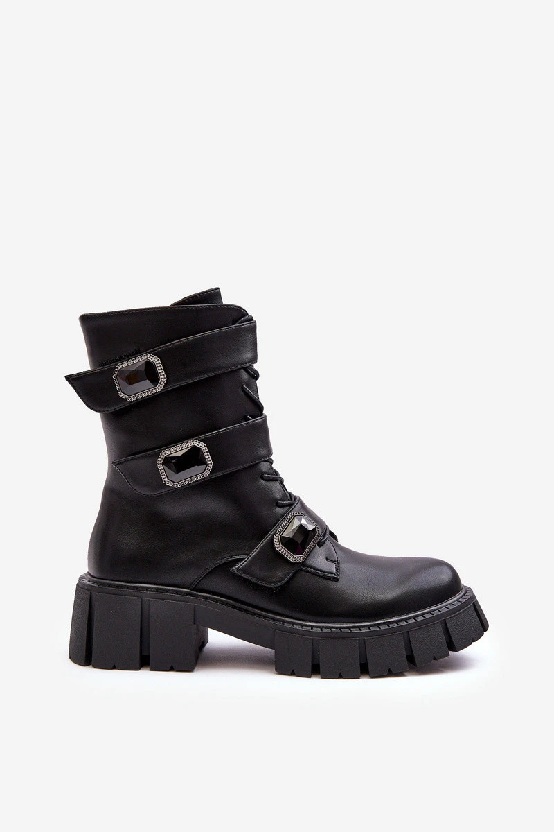 Dámské pracovní boty byly vyrobeny z vysoce kvalitní eko kůže. Uvnitř je izolována obuvnickou vložkou. Osazené na plochém podpatku a platformě. Na přední straně šněrování a pásky s ozdobami. Špička je zaoblená. Upevněný špičatý kotník. Tento model určitě využijete ve více stylizacích! Při výběru velikosti se řiďte tabulkou velikostí.