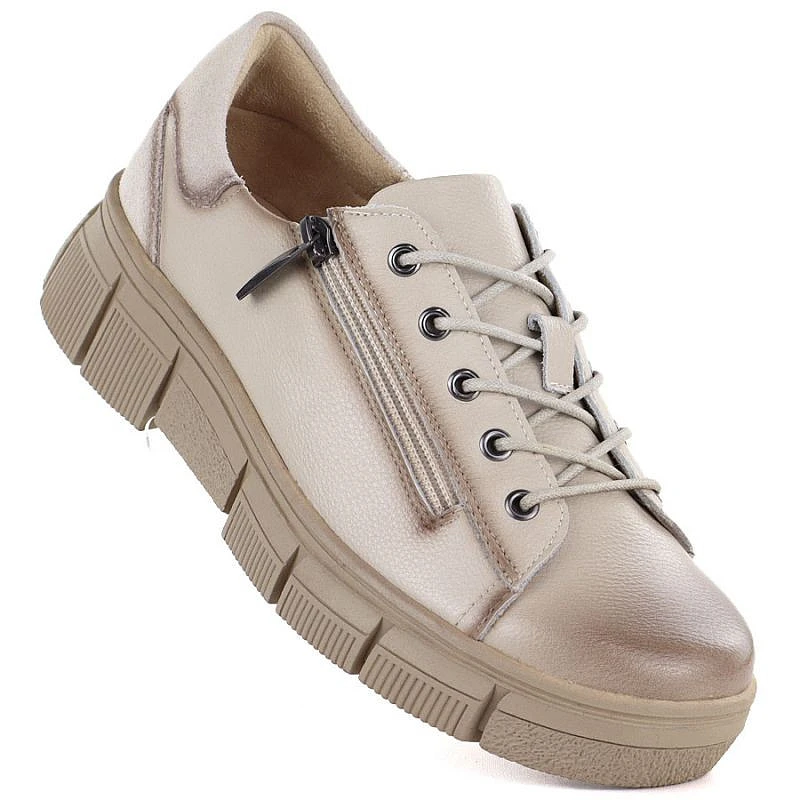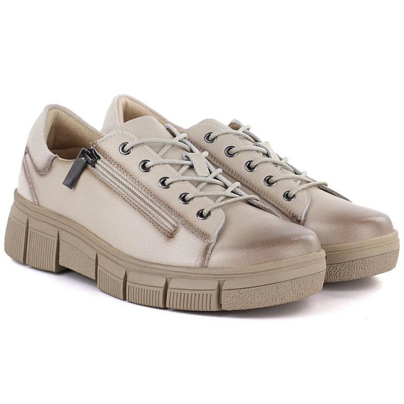 Dámské kožené boty na platformě béžové Cambell 26-19305