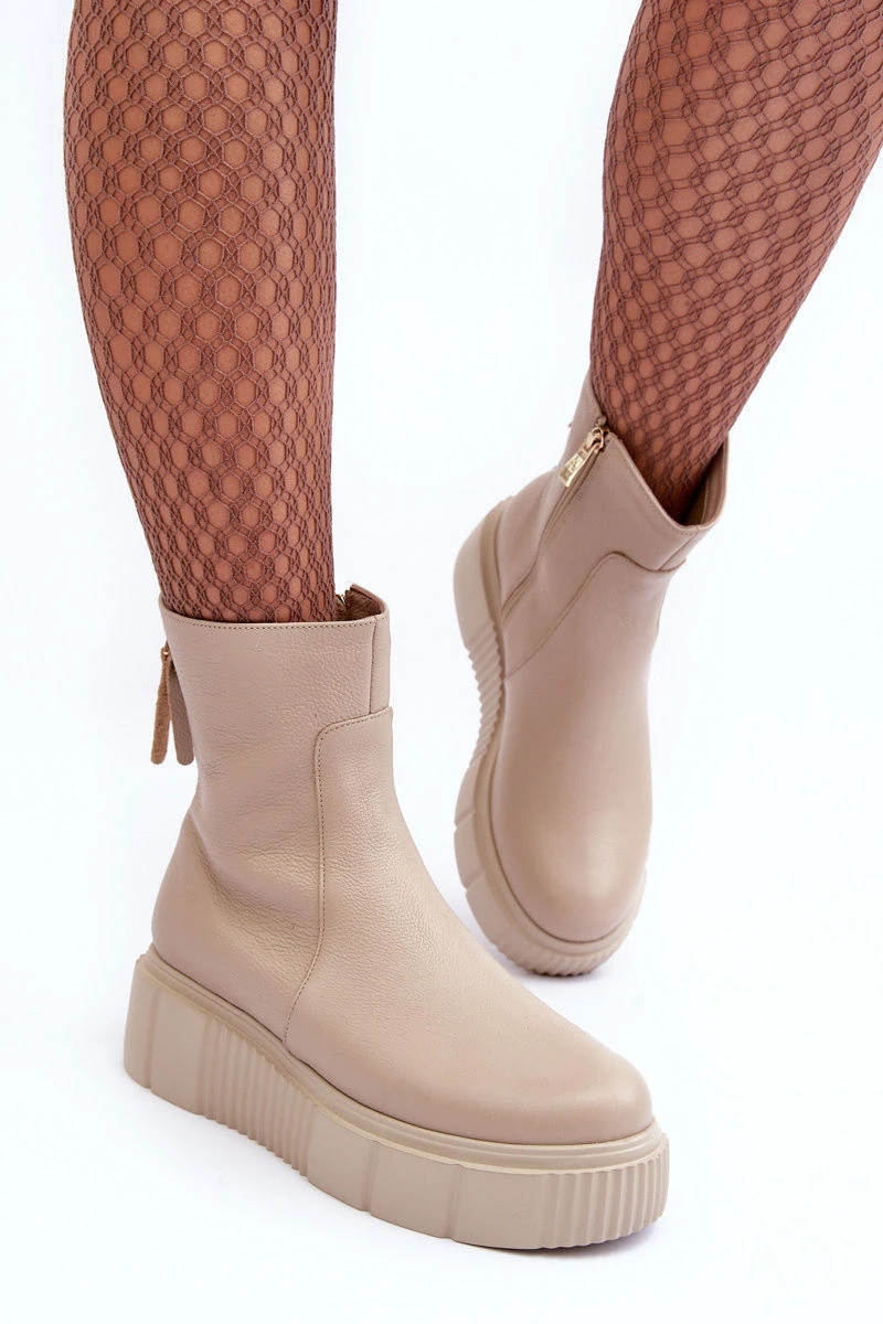 Dámské kožené boty na platformě Bežové model 21633565 - Zazoo