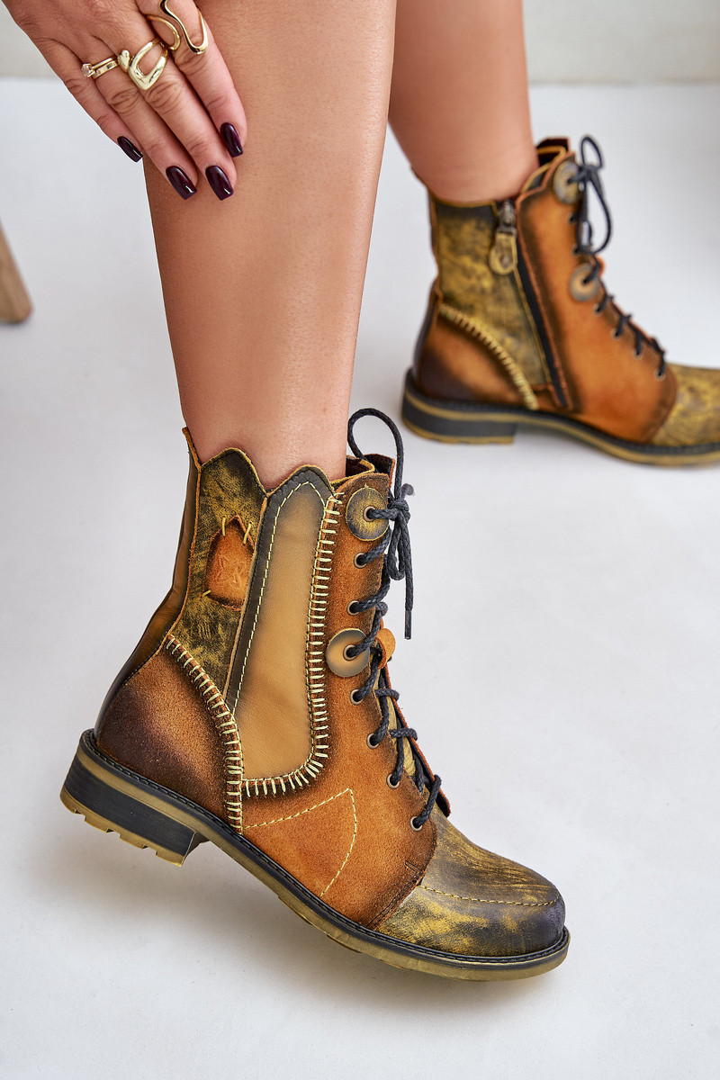 Dámské Kožené Boty Na Plochém Podpatku model 21677259 Žluté - Maciejka