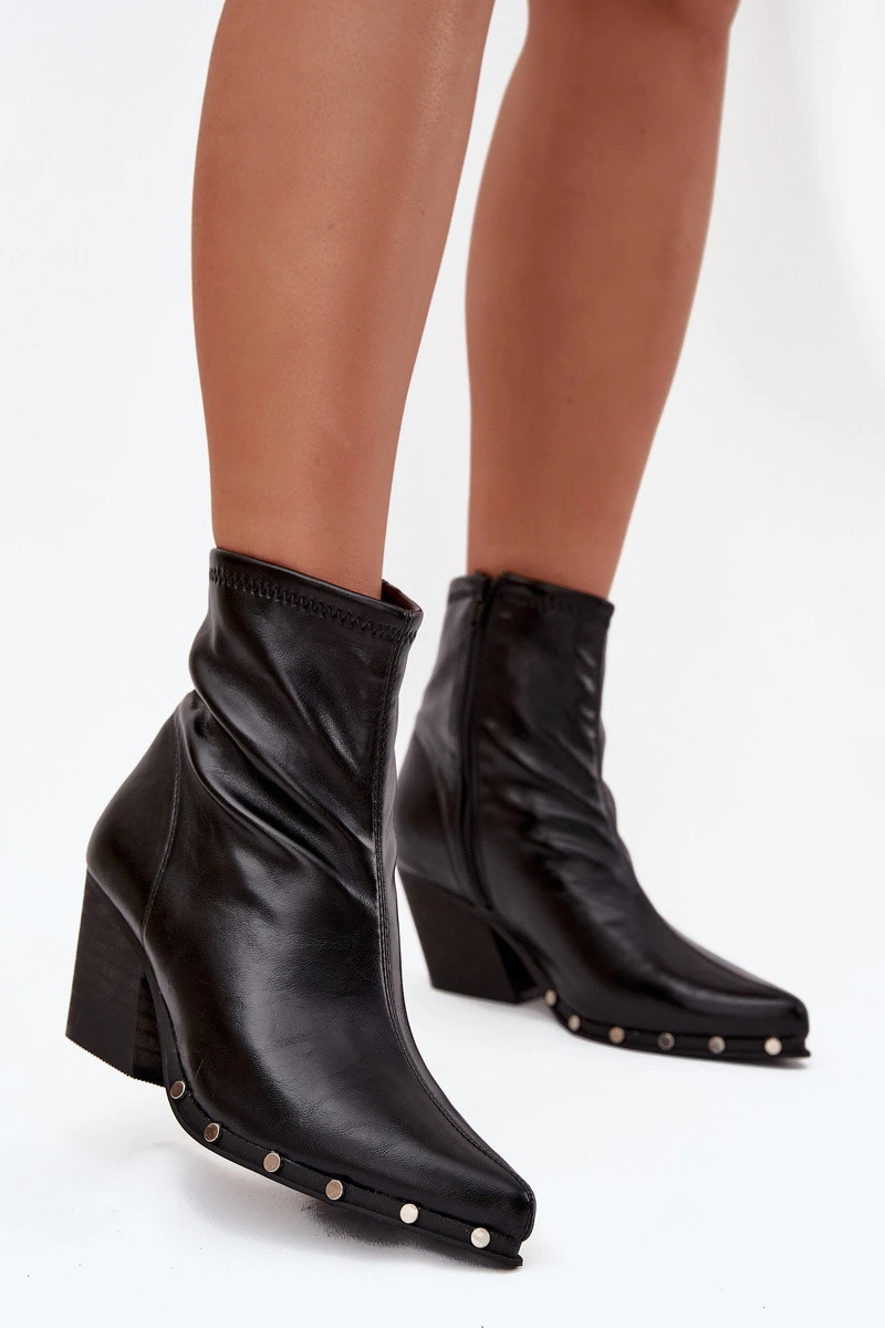 Dámské kožené boty s kovbojským vzhledem jsou ideální kombinací klasického střihu s moderním provedením. Charakteristické špičaté nosy a zkrácené podpatky ve tvaru sloupku jim dodávají západní charakter, zároveň ale krásně zeštíhlují postavu. Stabilní podpatek zajišťuje pohodlí při nošení, díky čemuž jsou vhodné na každodenní použití. Model se zapíná na praktický zip, což usnadňuje obouvání a sundávání. Dekorativní cvočky na podrážce tvoří výrazný detail, který upoutává pozornost a dodává celku rockový nádech. Jsou to výjimečné boty, které se skvěle hodí kombinovat s džíny a koženou bundou, ale také s šaty, čímž vytvářejí módní, kontrastní vzhled. Při výběru velikosti se prosím řiďte tabulkou velikostí. Při výběru velikosti se řiďte tabulkou velikostí.