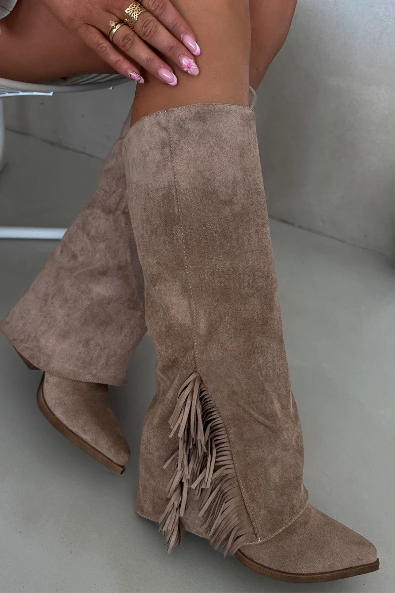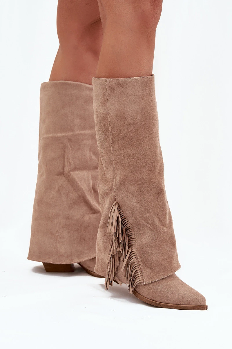 Dámské Kožené Boty Na Podpatku S třásněmi Béžové model 21704788 - Boto