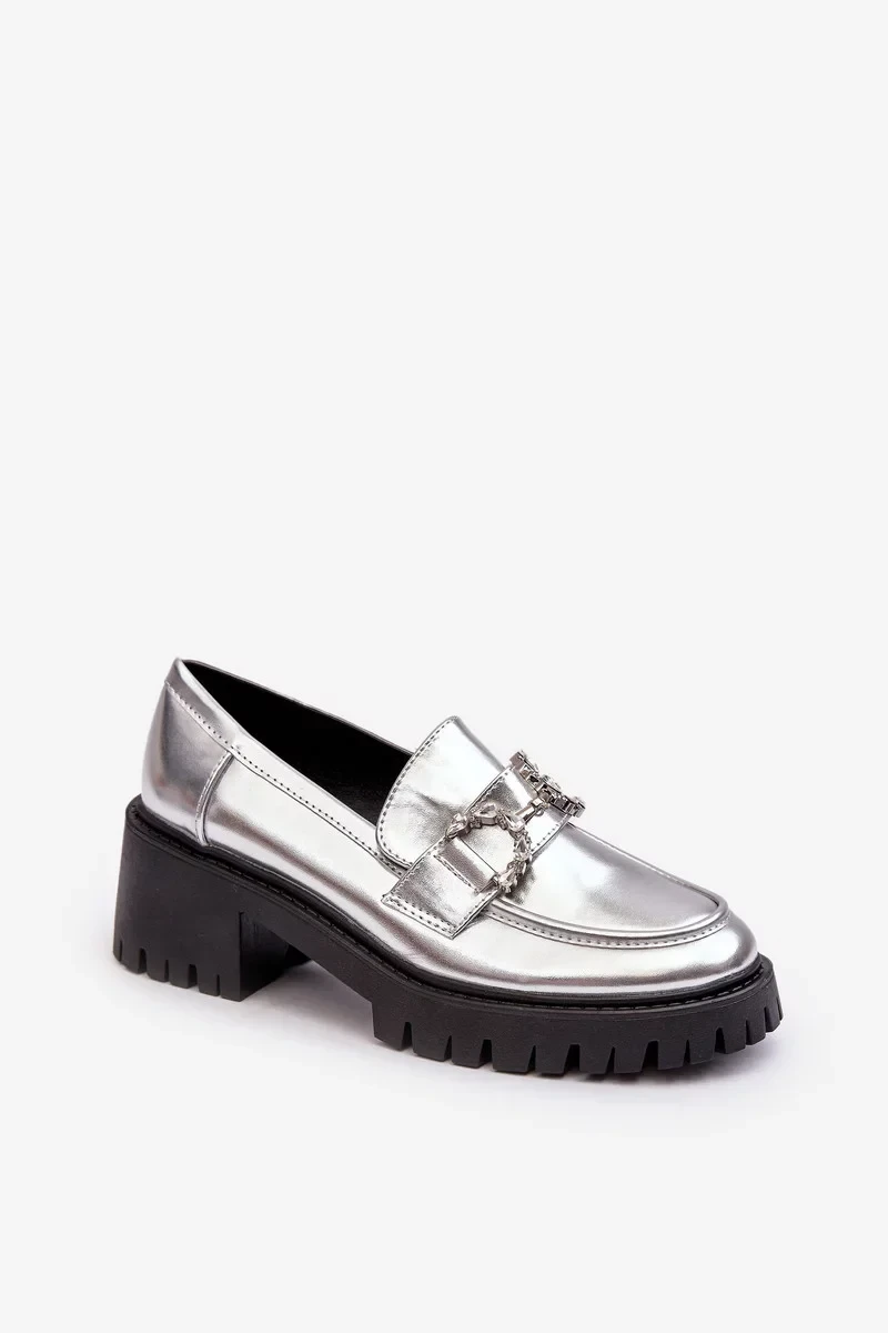 Dámské boty vyrobené z eko kůže. Nasazené na masivním nízkém podpatku a platformě. Na předním pásku je ozdoba bižuterie. Zaoblené prsty. Vyztužená pata. S tímto modelem vytvoříte mnoho skvělých podzimních stylů! Při výběru velikosti se řiďte tabulkou velikostí.