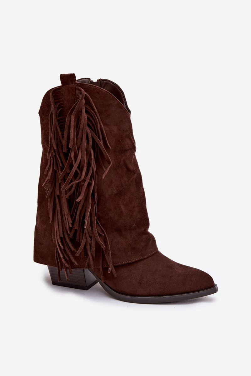 Dámské kožené boty s třásněmi na podpatku čokoládové Gralina