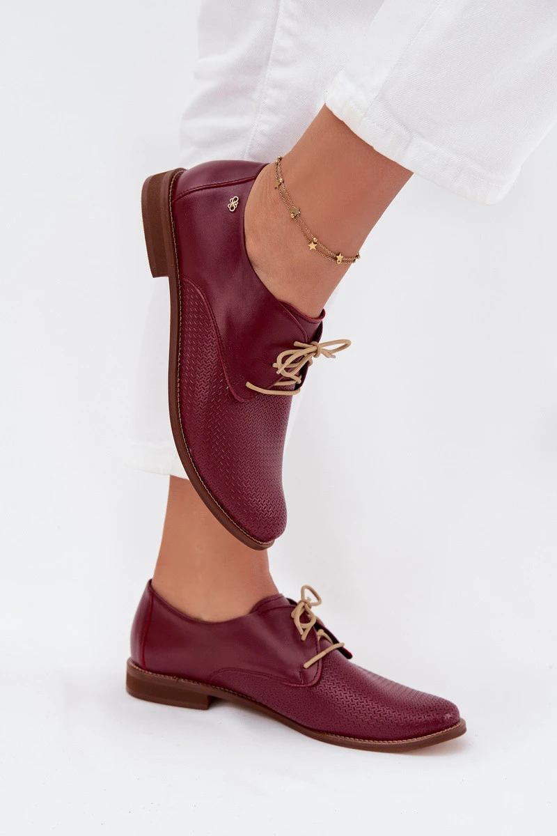 Dámské kožené elegantní šněrovací polobotky Zazoo 4238 bordó