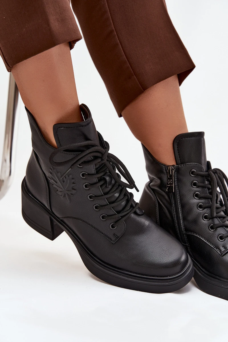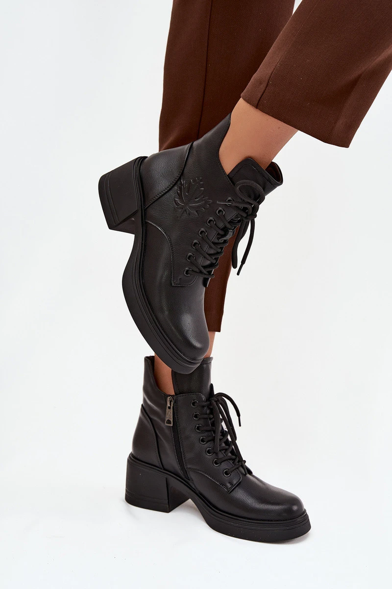 Přidání recenze k Dámské kožené kotníkové boty na klínku s podšívkou model 21712260 Černé - VINCEZA
