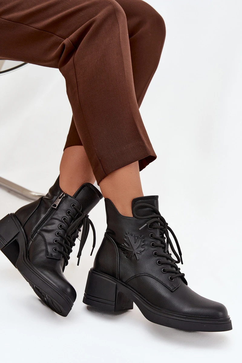 Dámské kožené kotníkové boty na klínku s podšívkou model 21712260 Černé - VINCEZA
