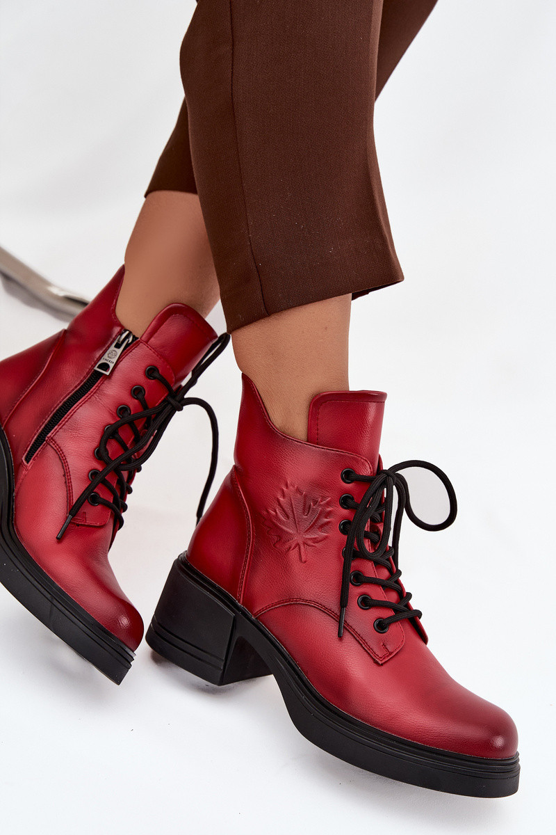 Dámské kožené kotníkové boty na klínku s vyhříváním Vinceza 39950 červené