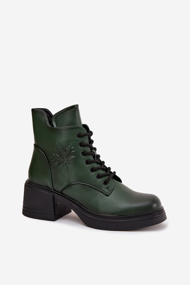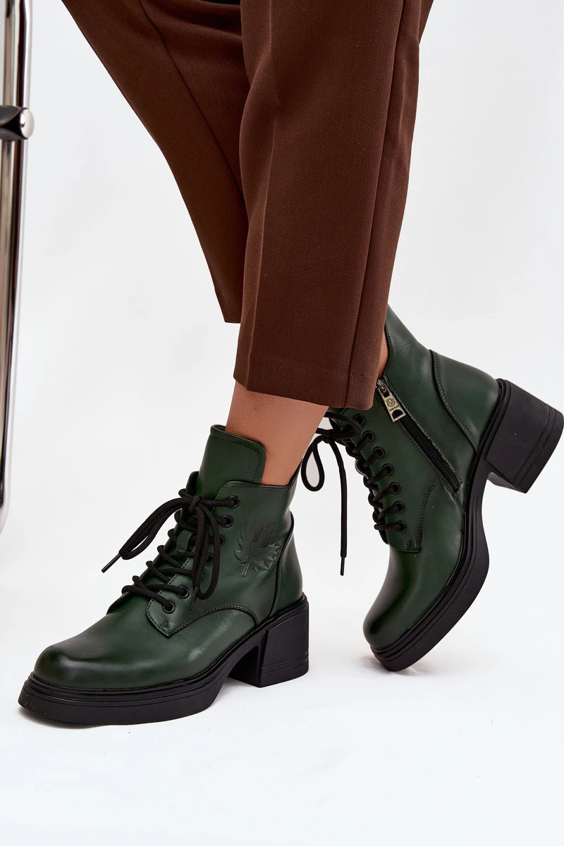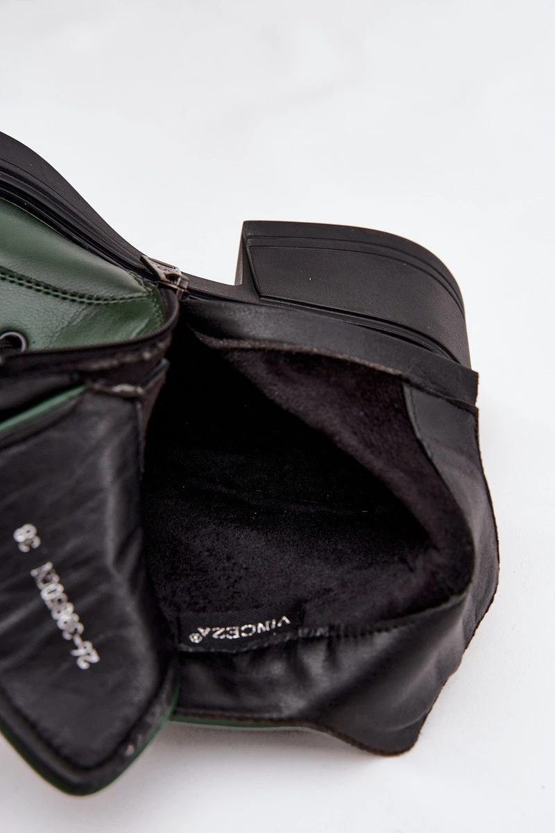 Dámské kožené kotníkové boty na klínu s tmavě zelené model 21712246 - VINCEZA