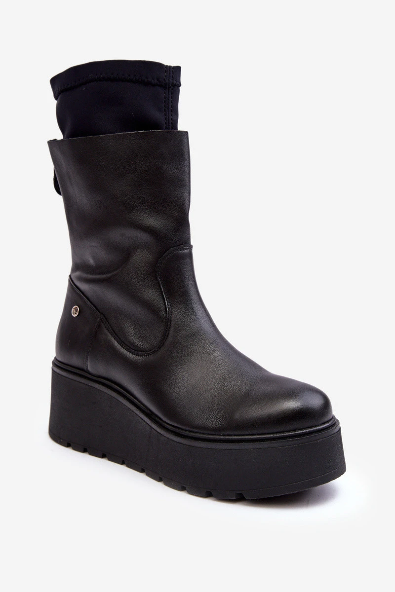 Dámské kožené kotníkové boty na masivní platformě model 21714699 Černé - Maciejka