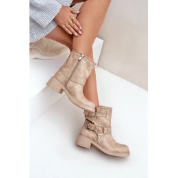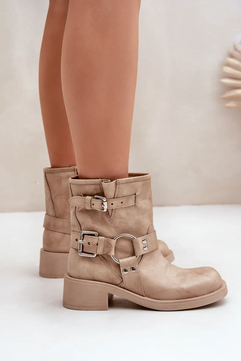 Dámské Kožené Kotníkové Boty Na Nízkém Bloku Podpatku S Pásky Zazoo 3644 Béžové
