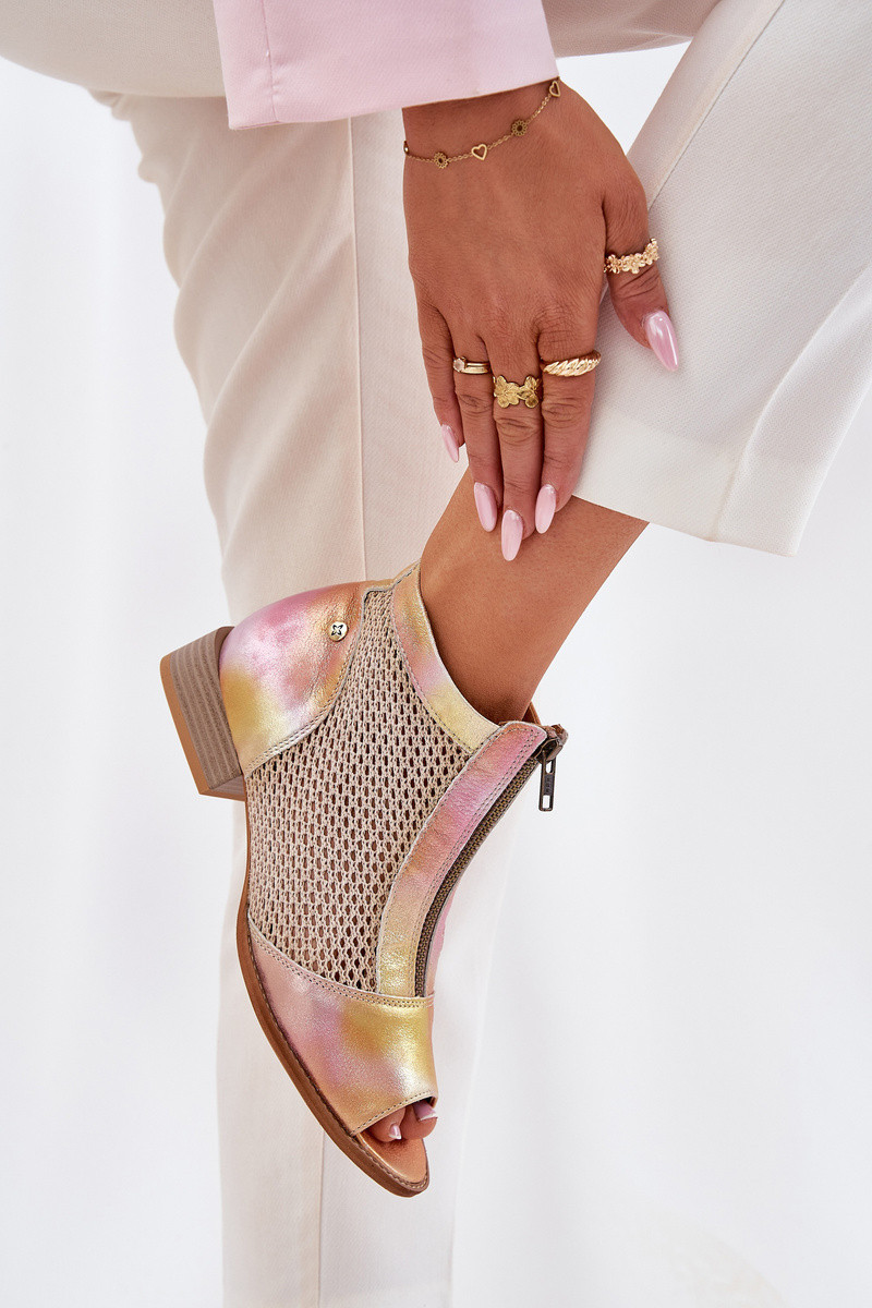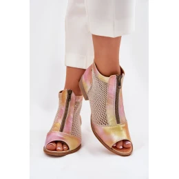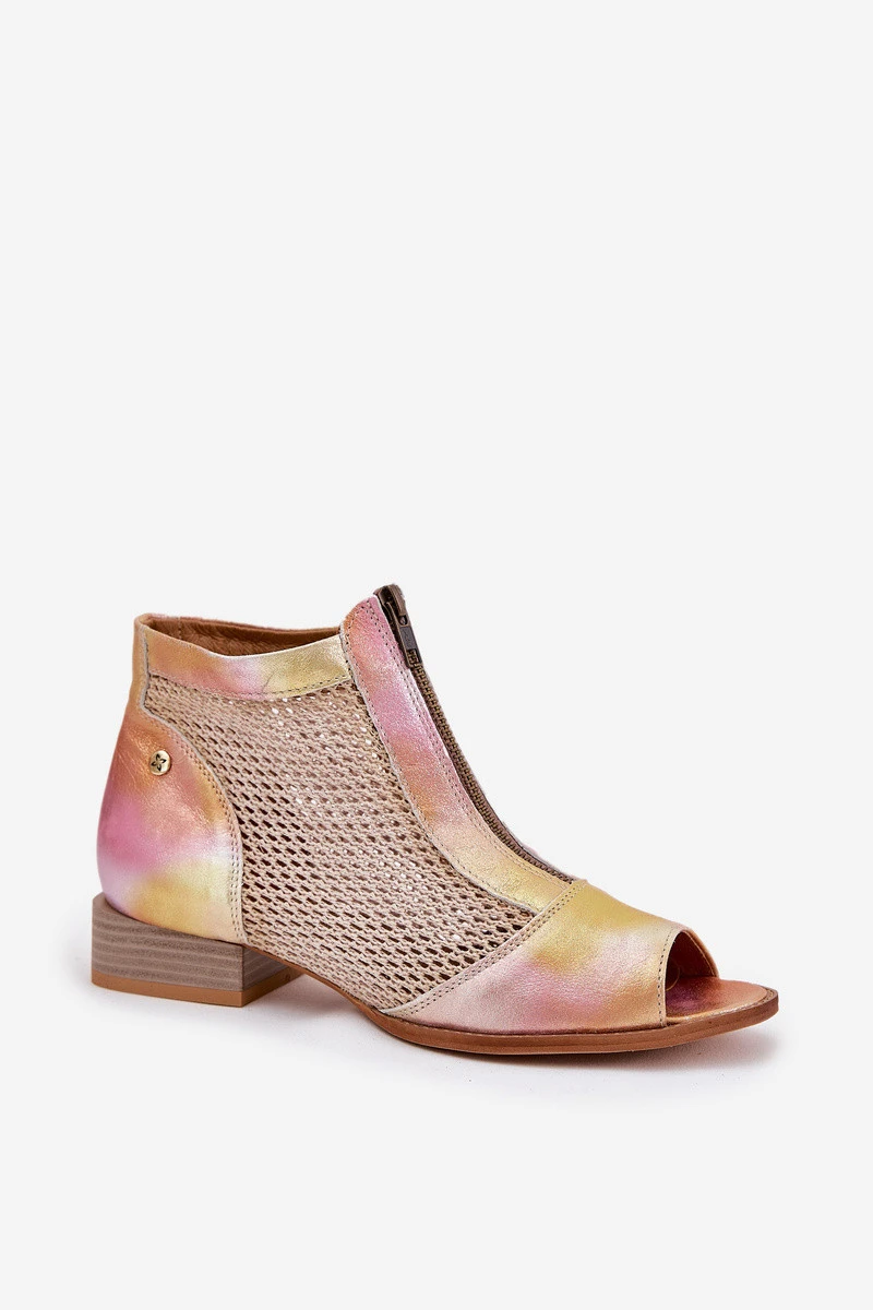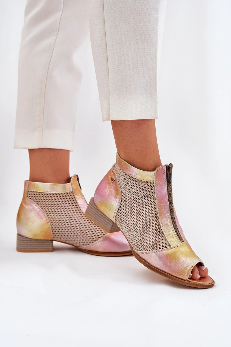 Dámské Kožené Kotníkové Boty Na Plochém Podpatku S Otevřenými Prsty Maciejka Růžovo-Oranžové 06413-15