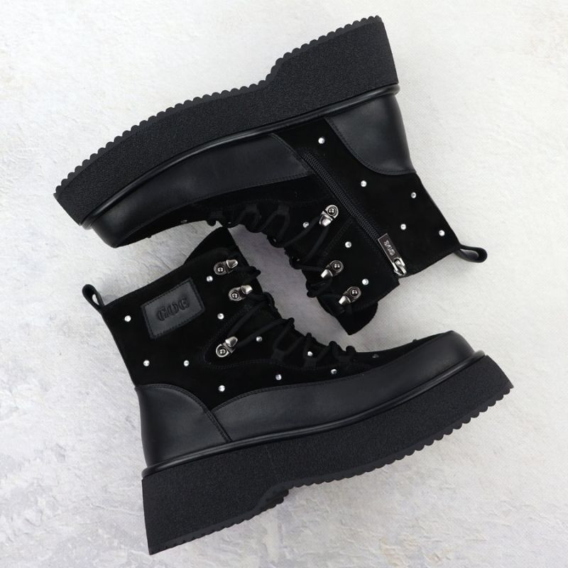 Dámské kožené kozačky na platformě zirconia černé Goe SS2N4140