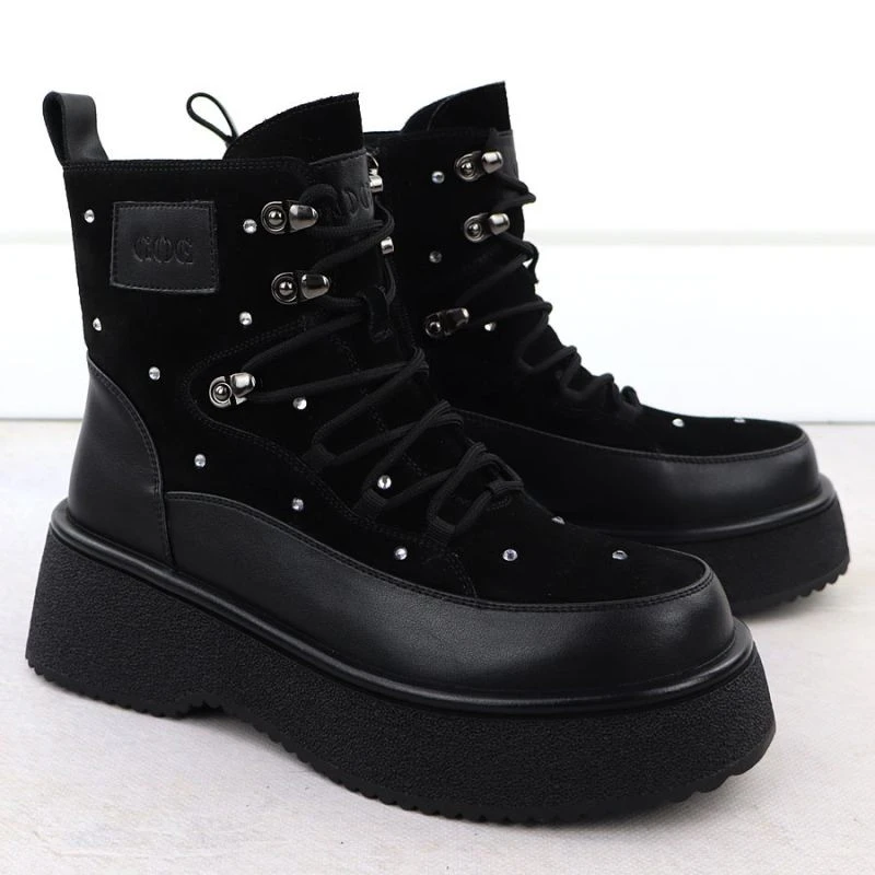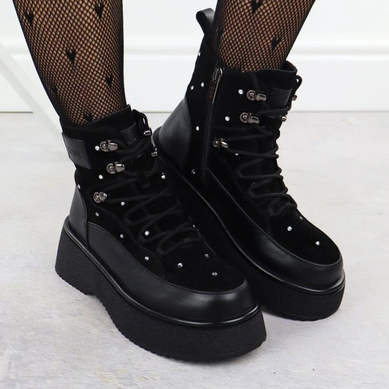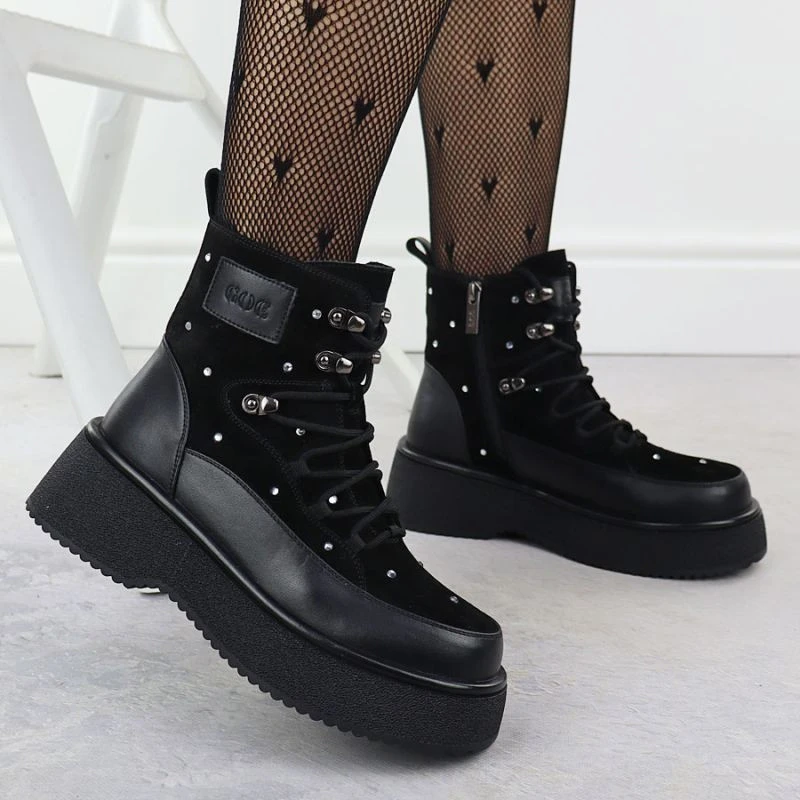 Přidání recenze k Dámské kožené kozačky na platformě zirconia černé Goe SS2N4140