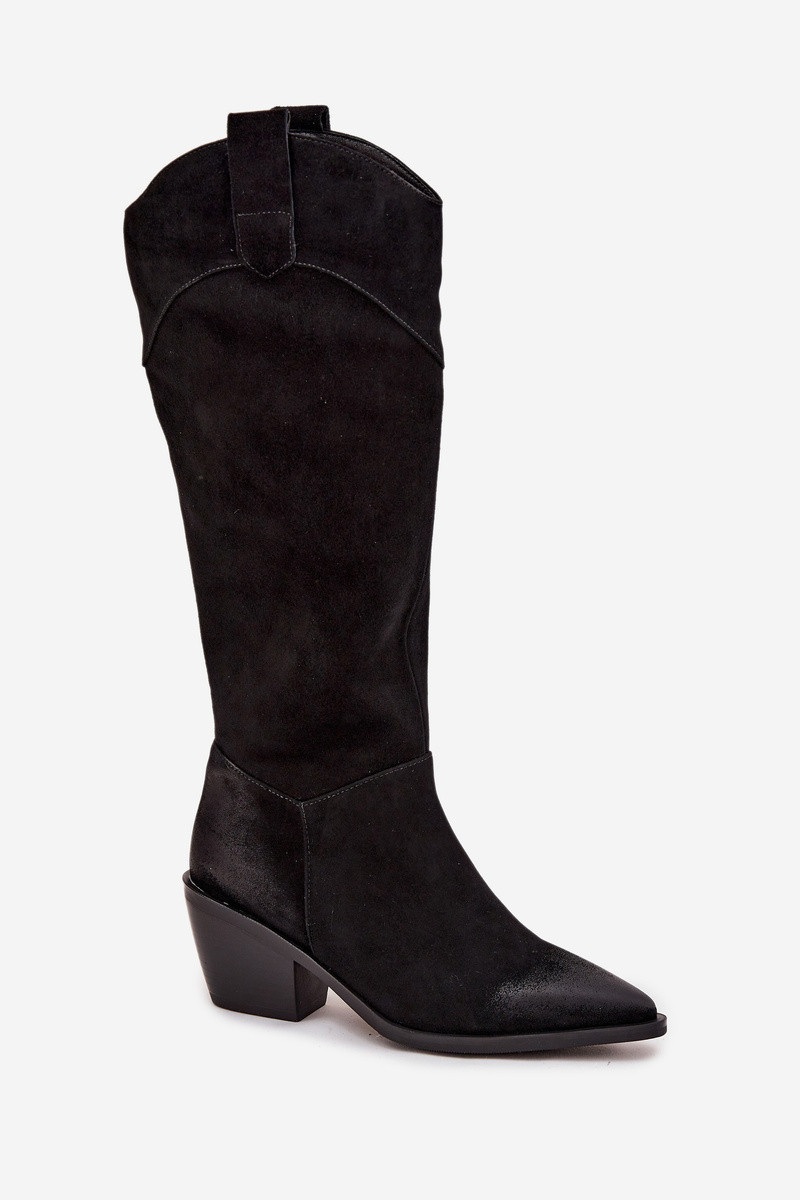 Dámské kožené kozačky na podpatku z přírodního semiše Černé model 21725199 - Artiker