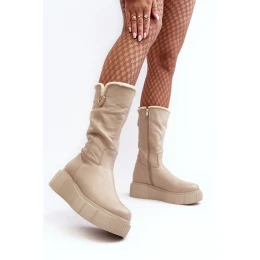 Dámské kožené kozačky se vlnou Zazoo 70121 béžové