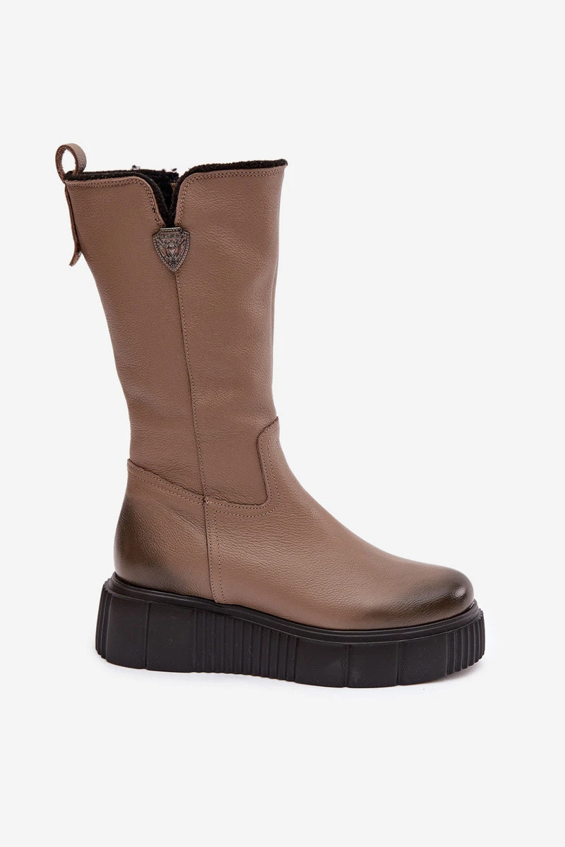 Dámské kožené kozačky Zazoo s vlnou – tmavě béžové