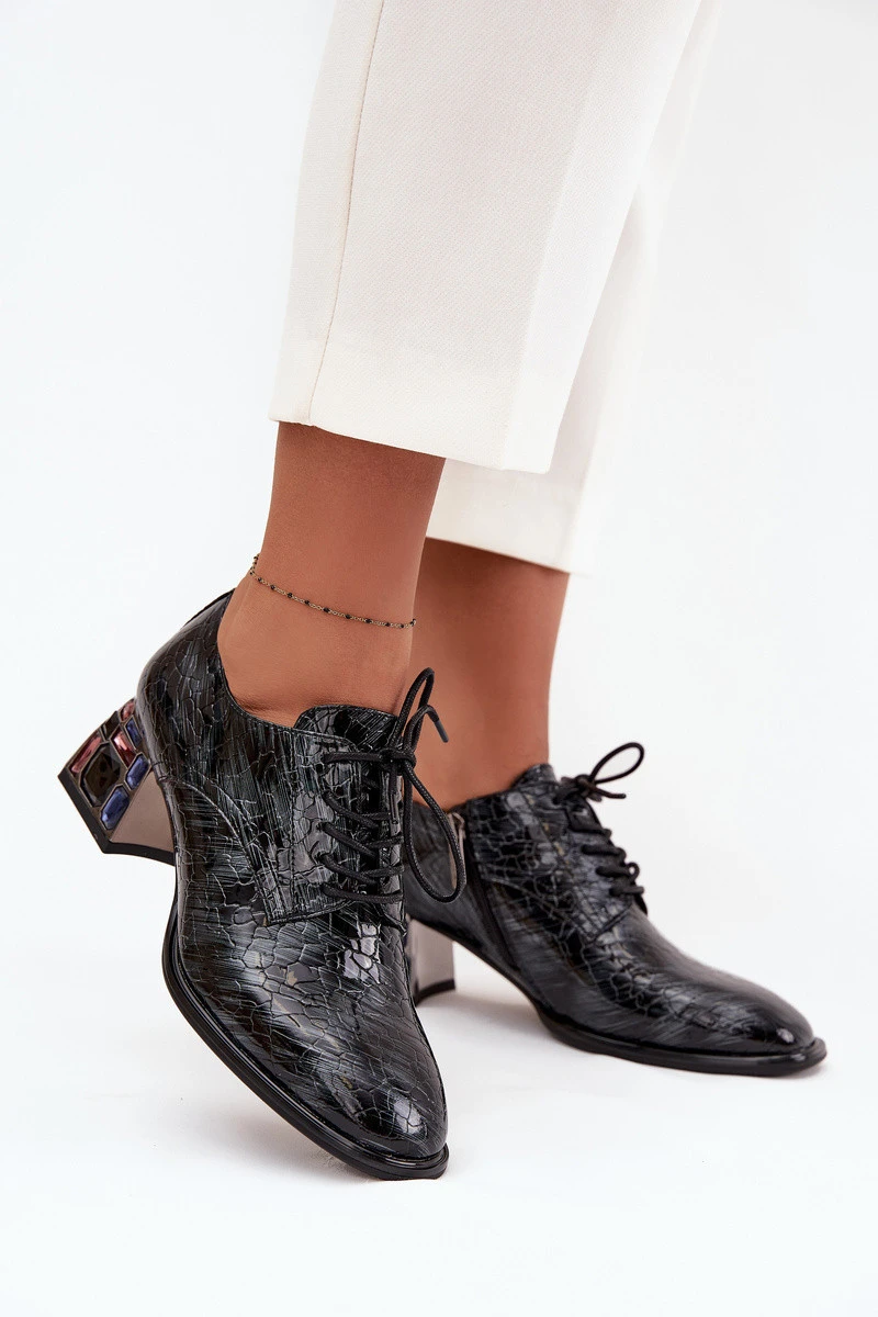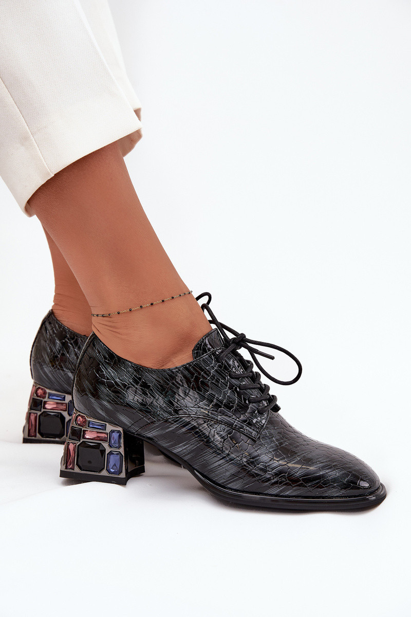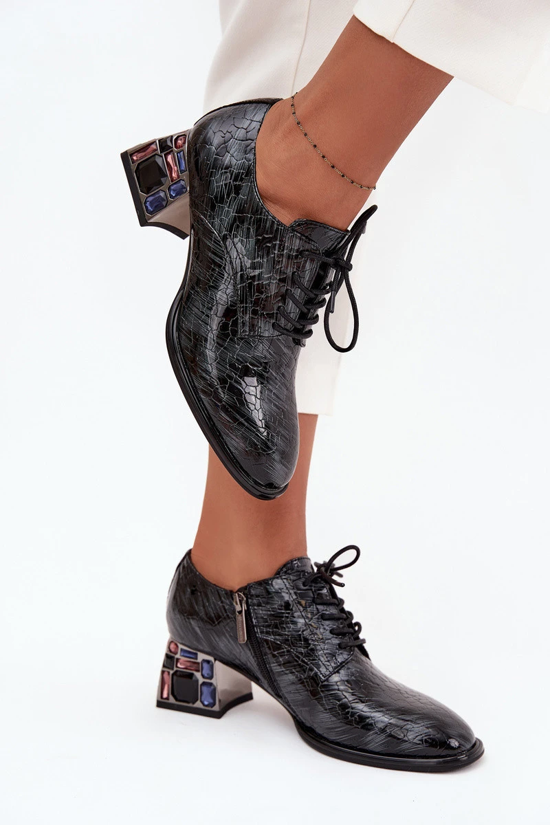 Dámské kožené lakované polobotky na podpatku s krystalky Artiker – šedé
