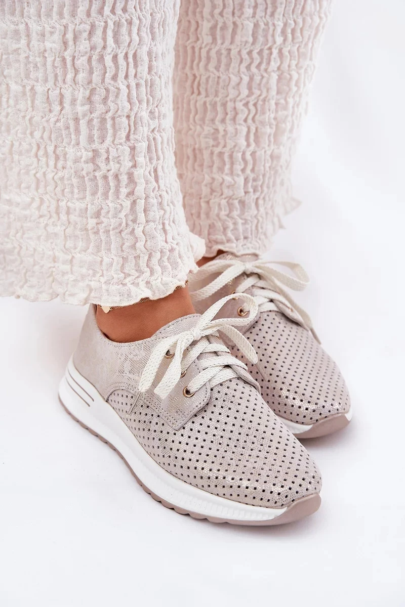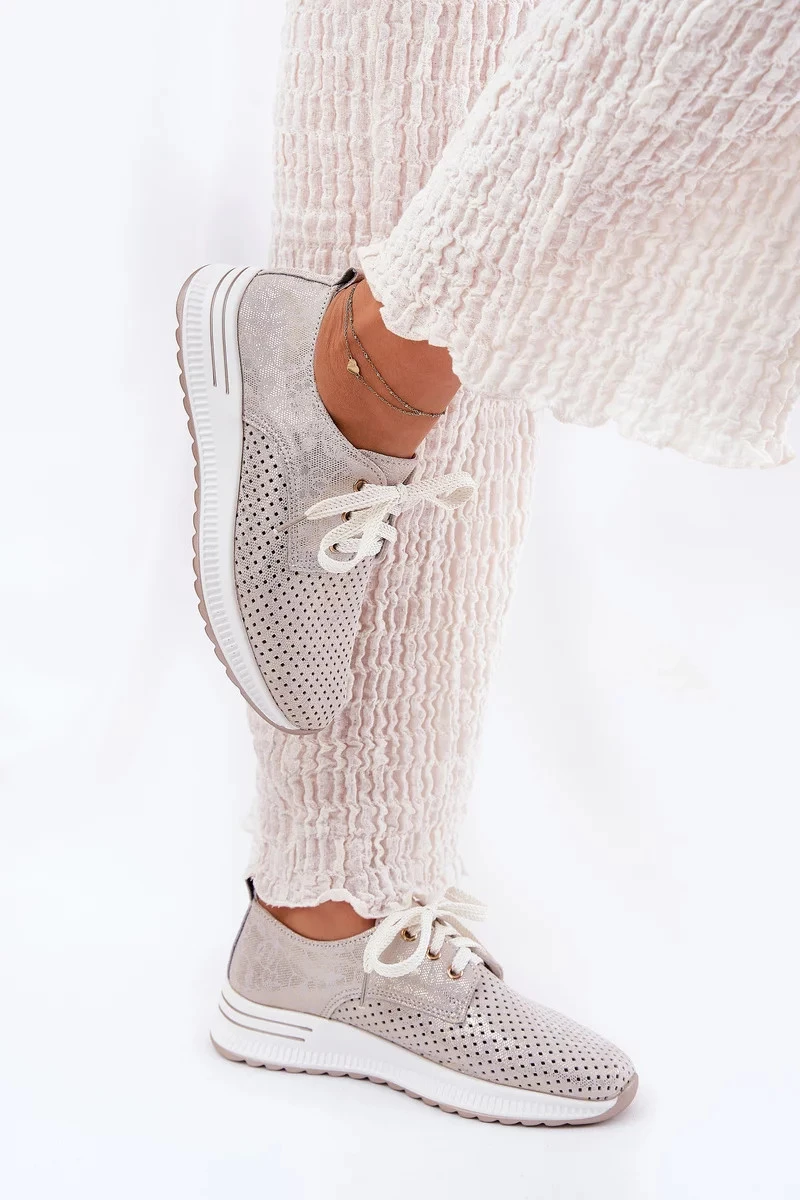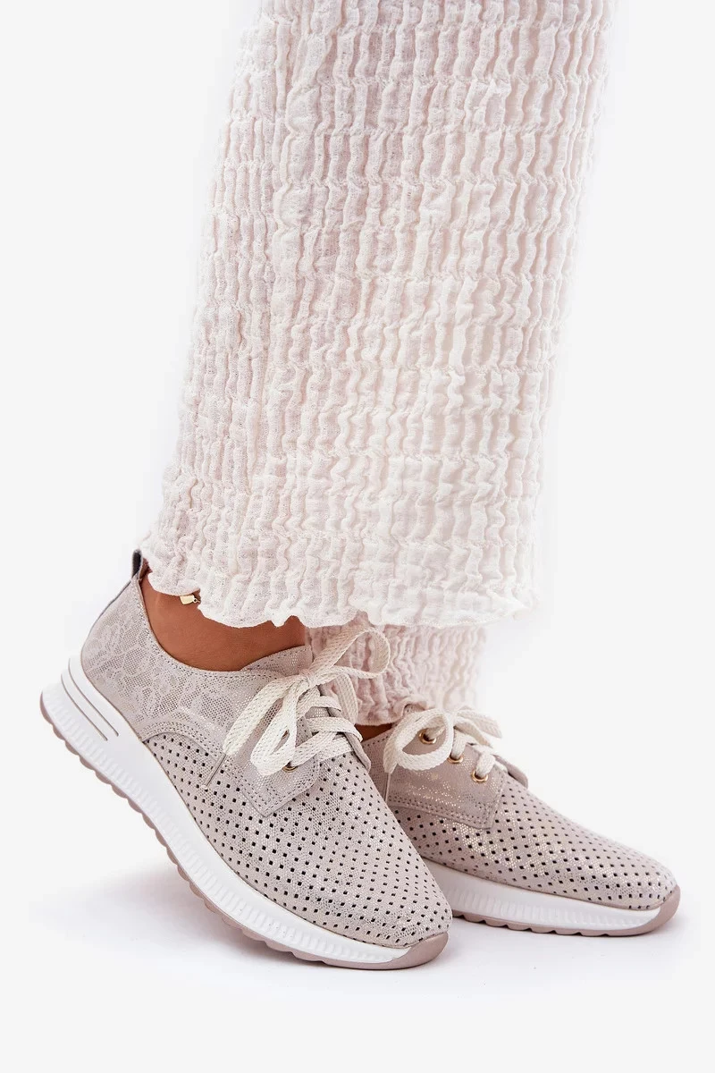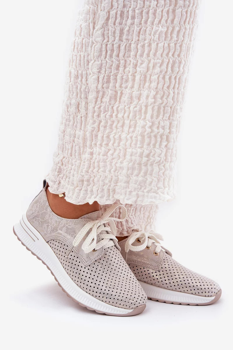 Dámské kožené lehké polobotky na platformě Artiker – béžovo/zlaté