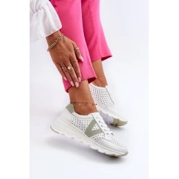 Moderní dámská sportovní obuv byla vyrobena z přírodní kůže. Tento model má vzdušný vzorek po celé špičce. Boty jsou umístěny na jemném klínku a platformě. Tato obuv má ekologickou kůži a klasické šněrování, které umožňuje správné přizpůsobení obuvi. Při výběru velikosti se řiďte tabulkou velikostí.