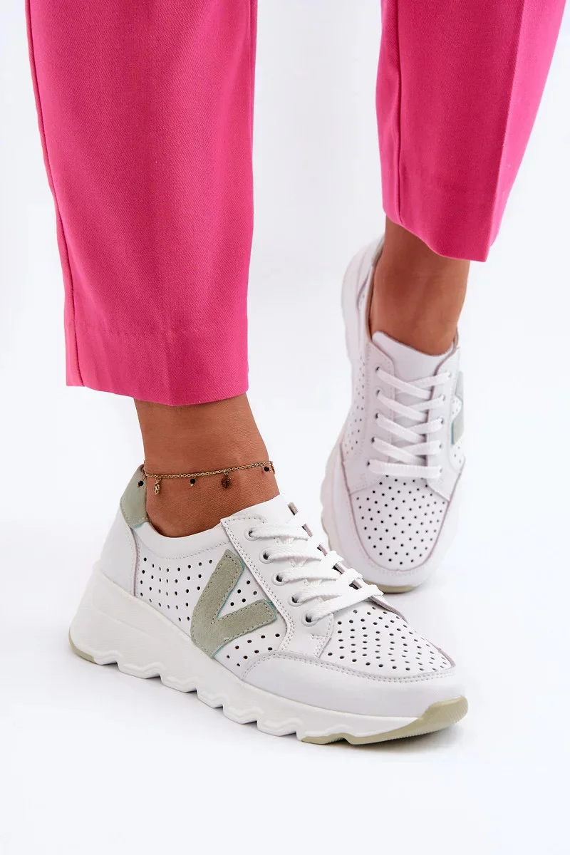 Dámské kožené lehké sportovní boty bílé Eleonori
