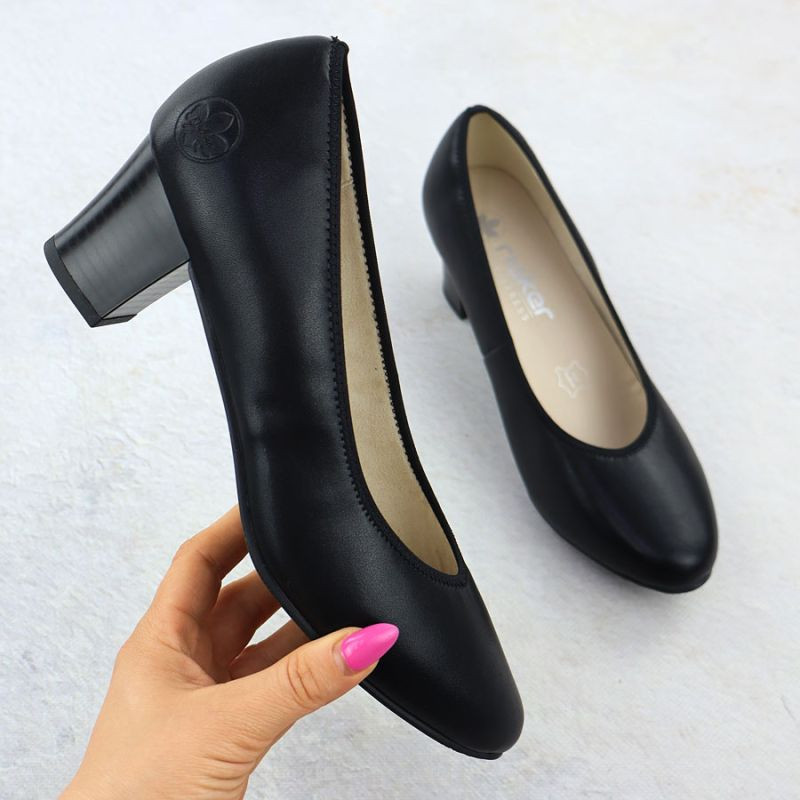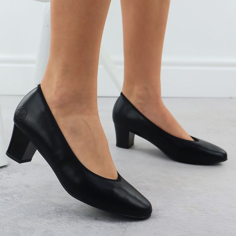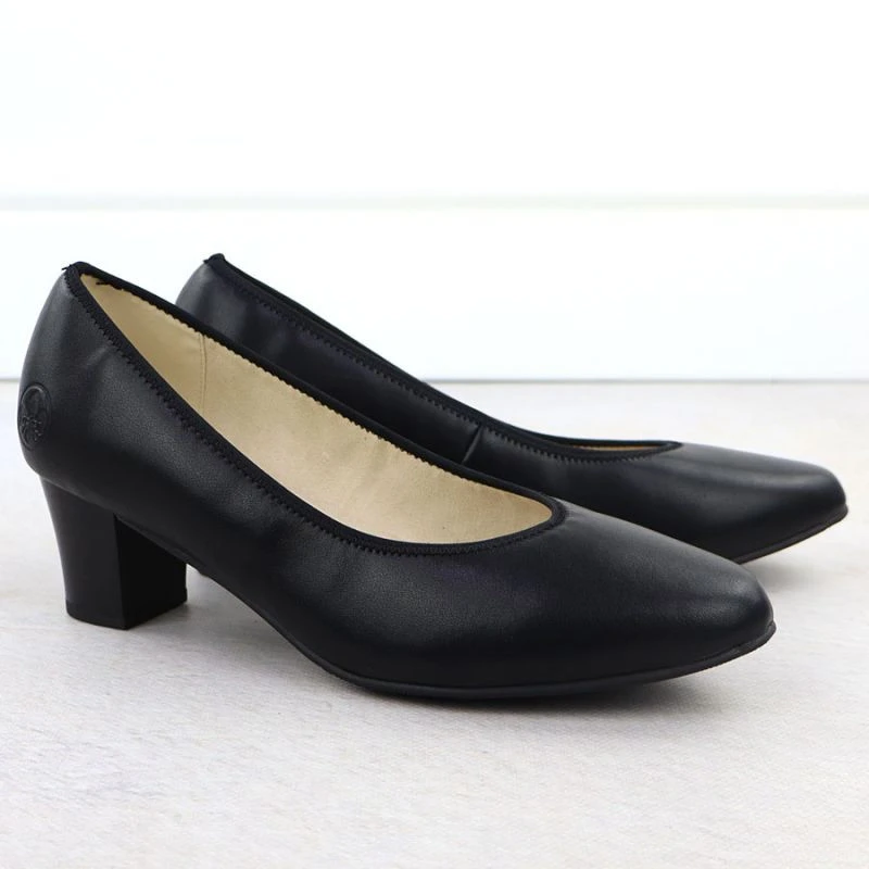 Dámské kožené lodičky na nízkém jehlovém podpatku černé Rieker 44650