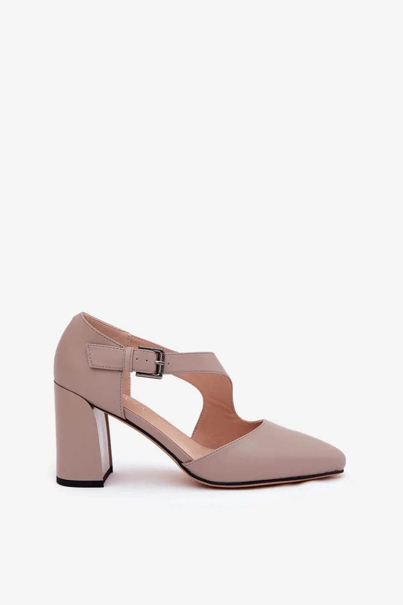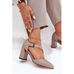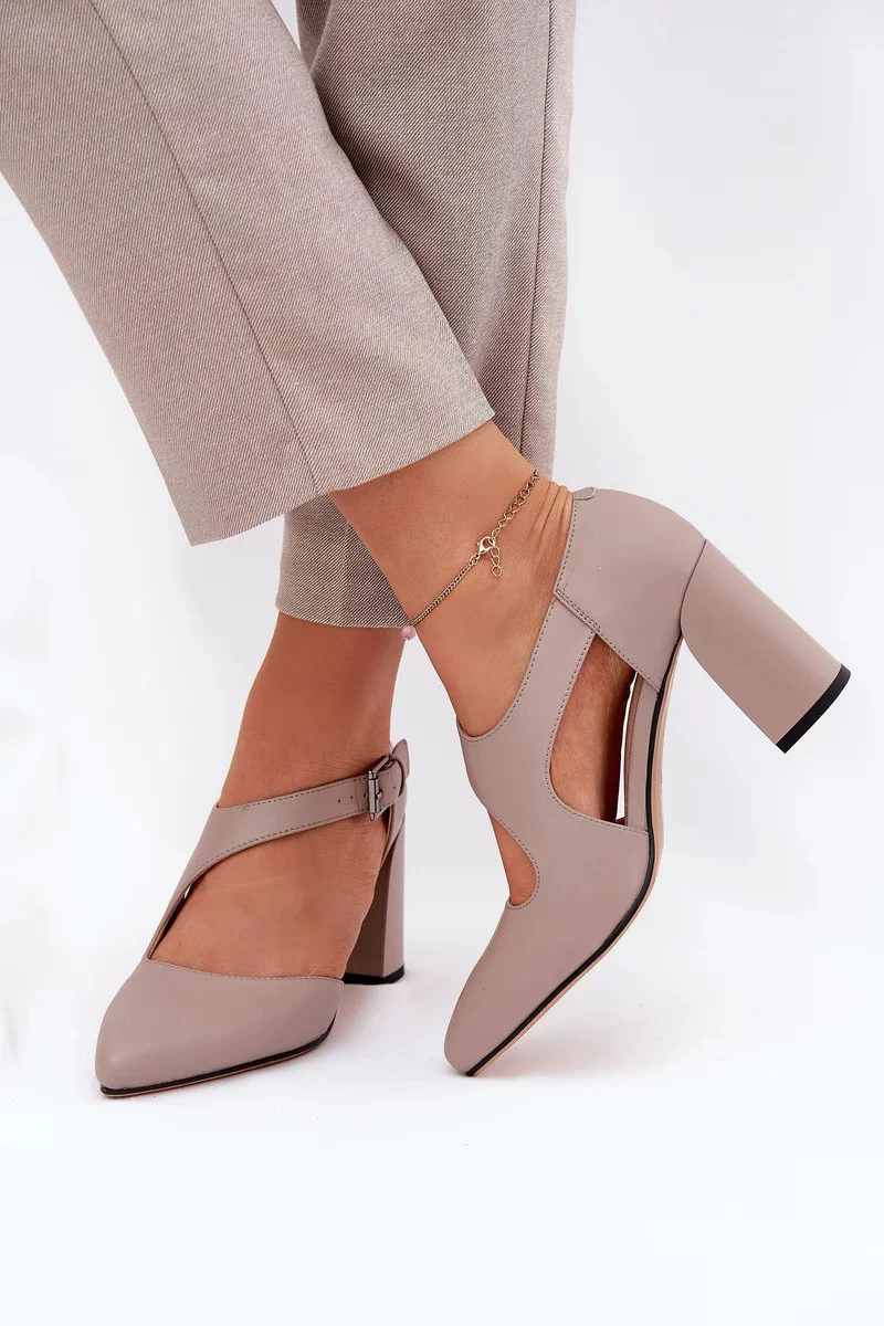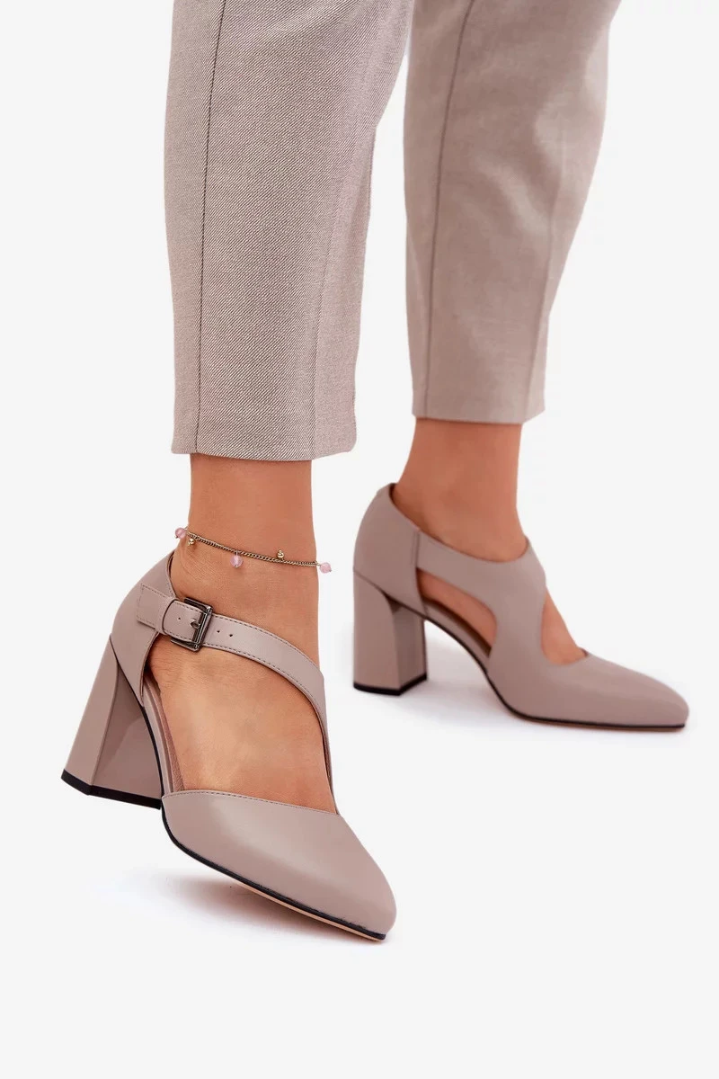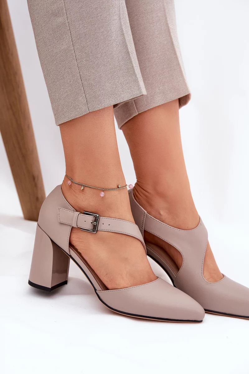 Dámské kožené lodičky na podpatku s ozdobnou sponou Vinceza – šedé