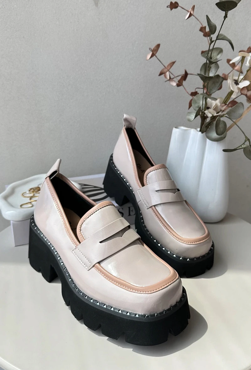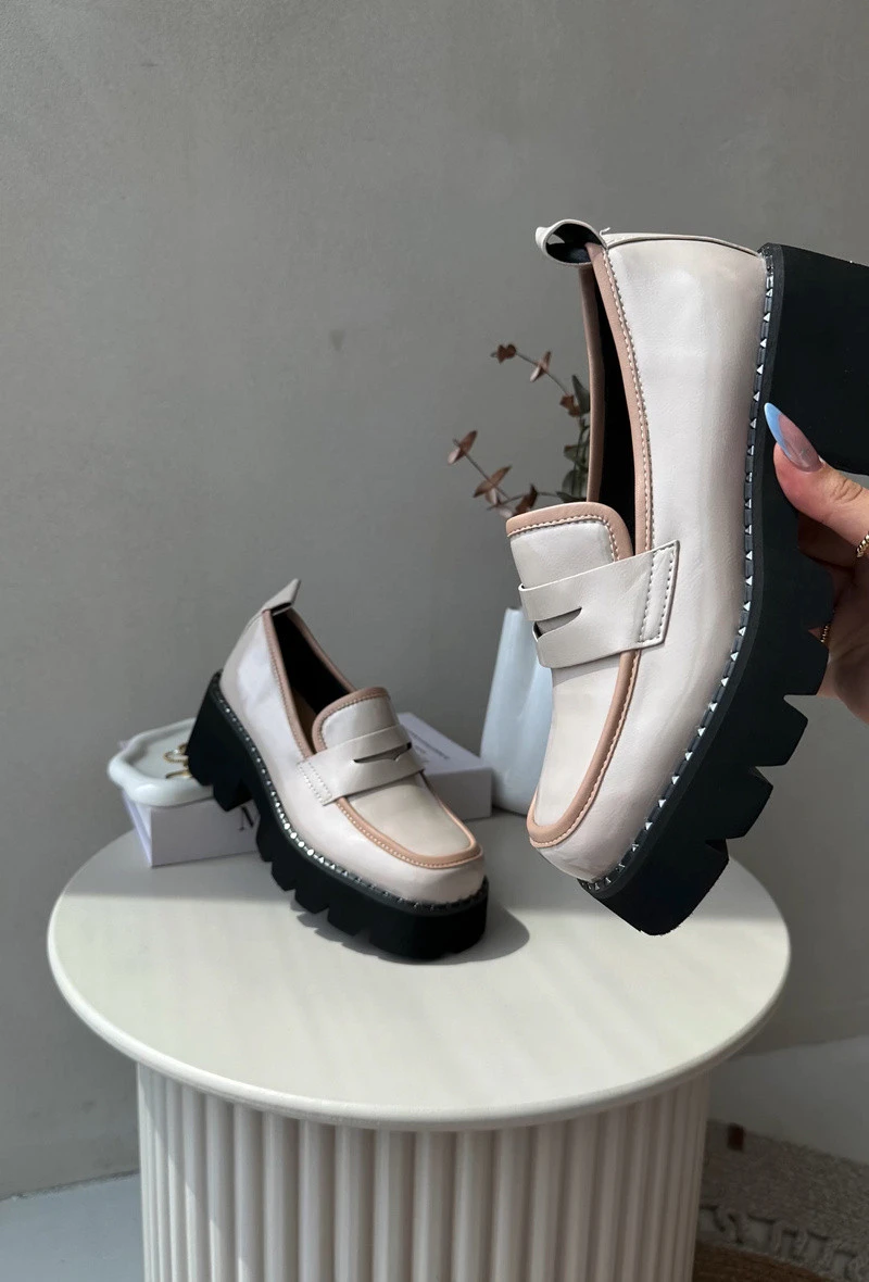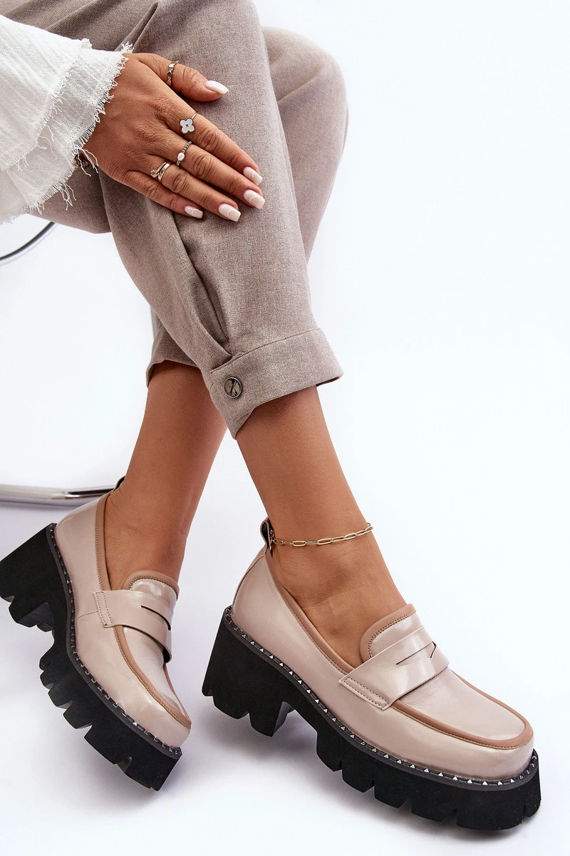 Dámské mokasíny byly vyrobeny z ekologické kůže. Na přední straně mají ozdobný pás s vyřezávanou výzdobou. Tento model je umístěn na plochém podpatku a platformě, která je navíc zdobena kamínky. Mokasíny mají vložku z přírodní kůže. Tento model je skvělý na jarno-podzimní sezónu! Při výběru velikosti se řiďte tabulkou velikostí.
