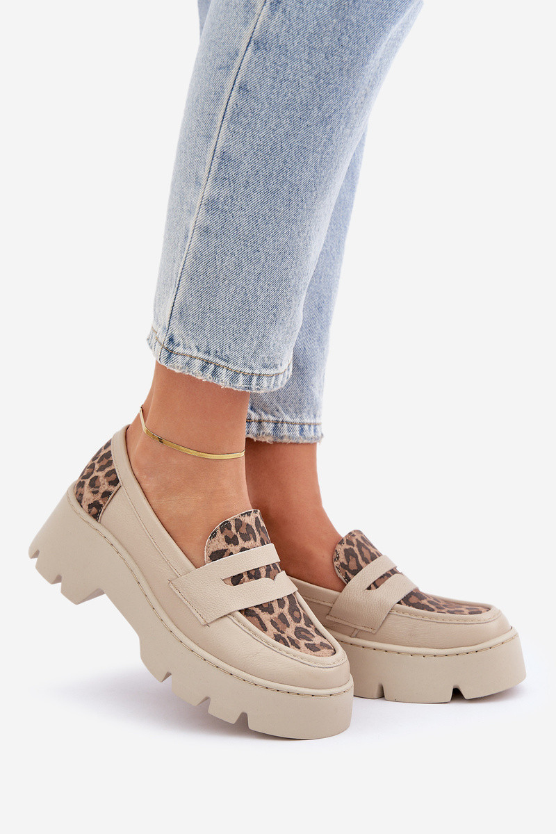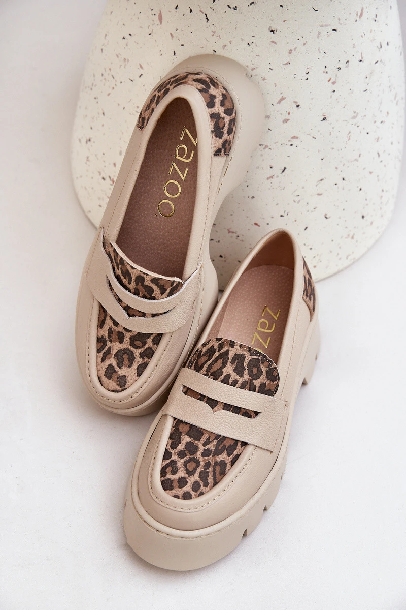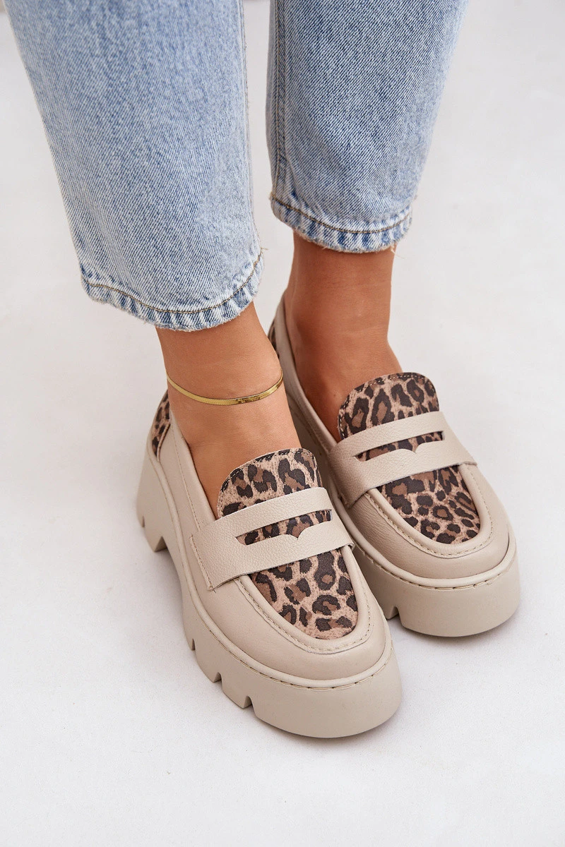 Dámské Kožené Mokasíny Na Platformě A Ploché Podpatky Leopardí Světle Béžové Zazoo 20191