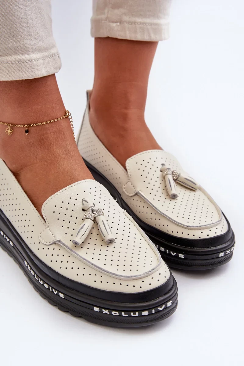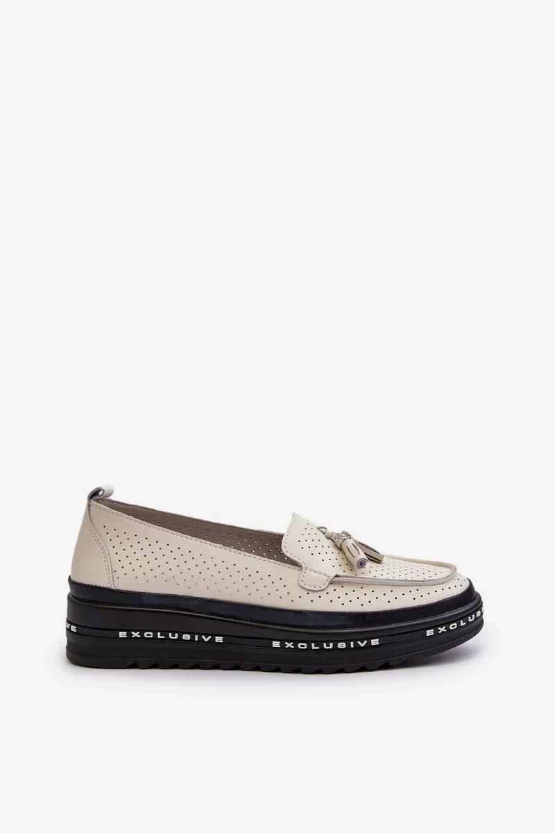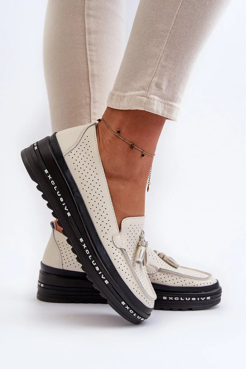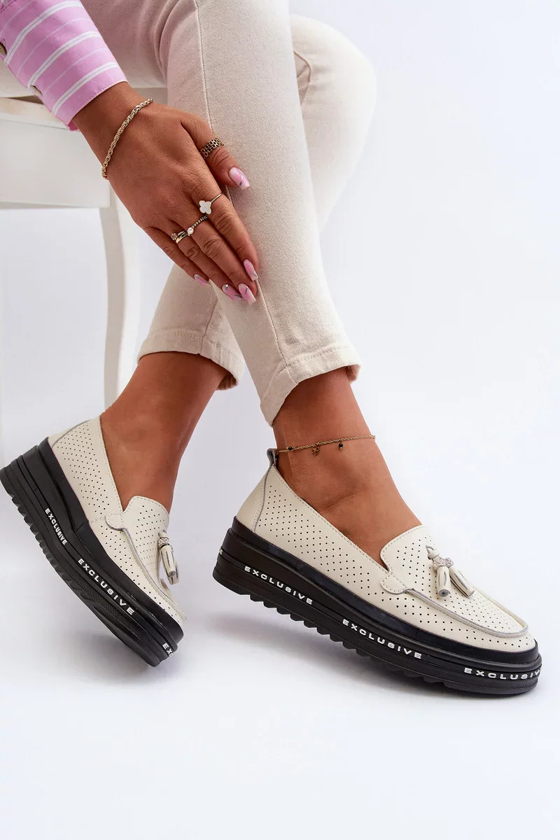 Dámské kožené mokasíny na platformě Béžová Assetnima