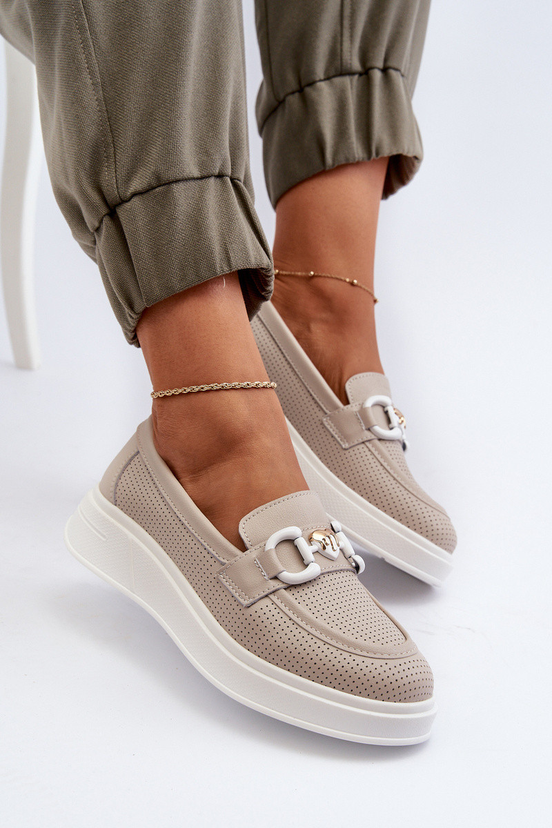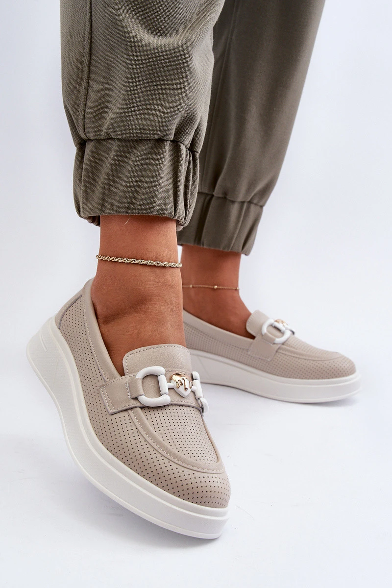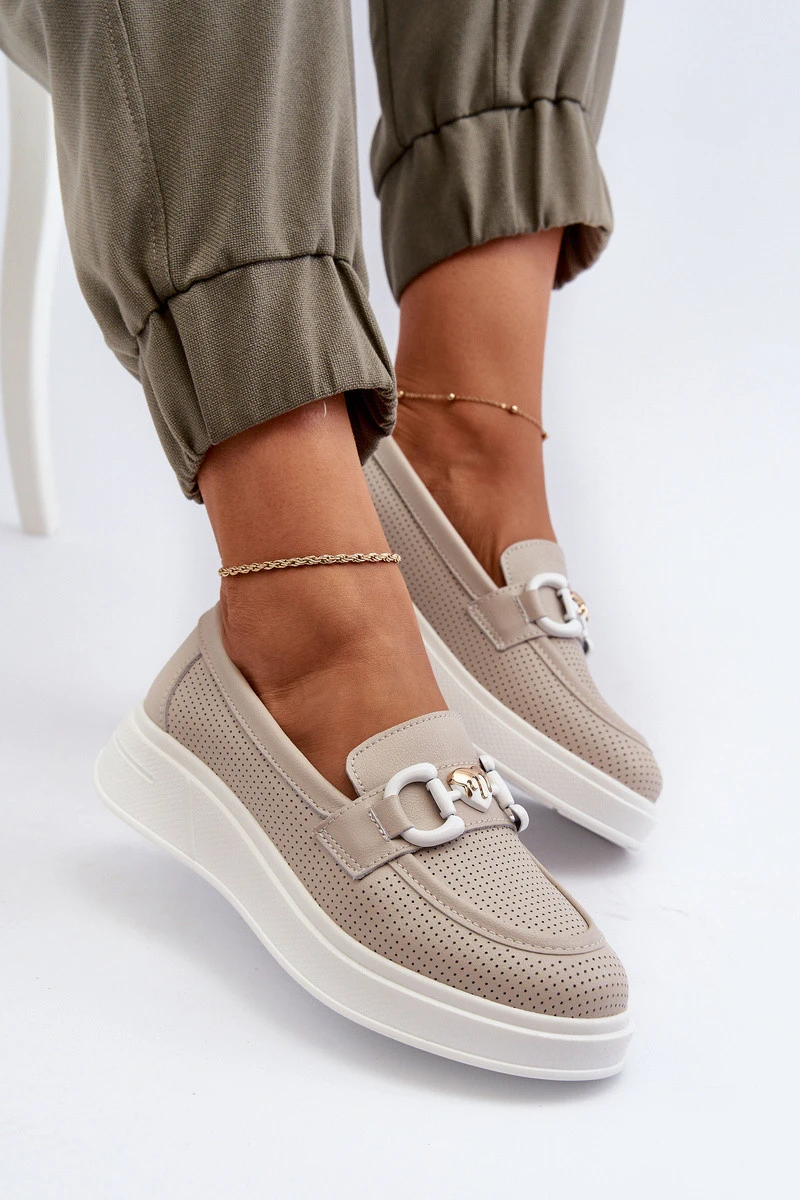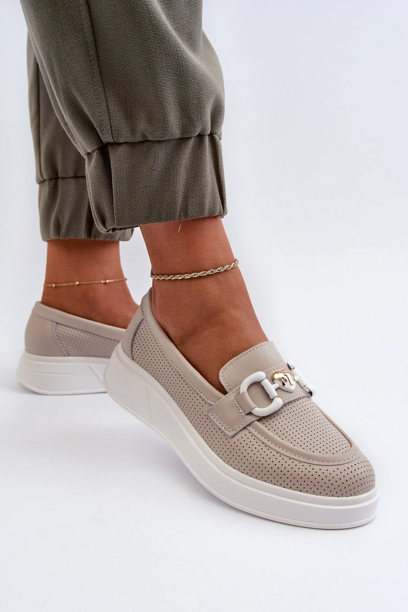 Dámské kožené mokasíny na platformě béžové model 21655725 - S.Barski