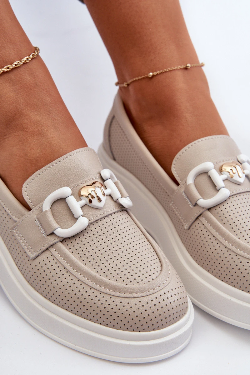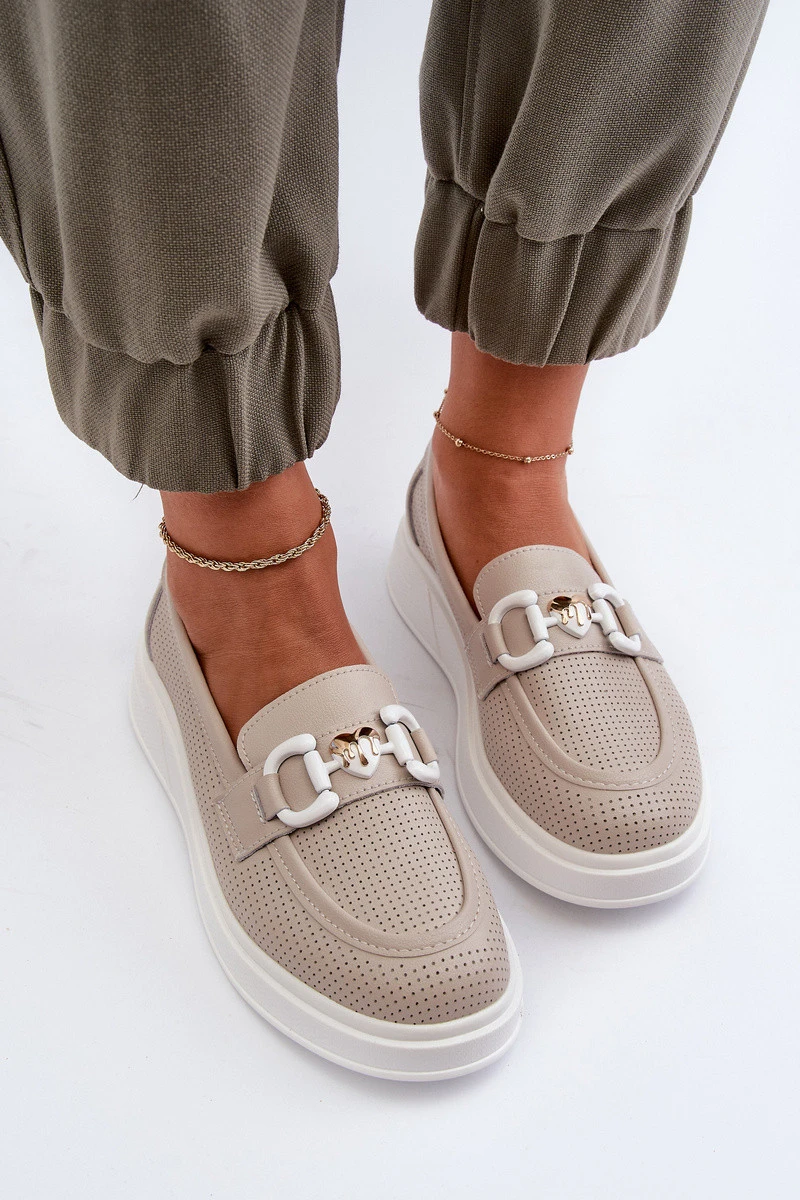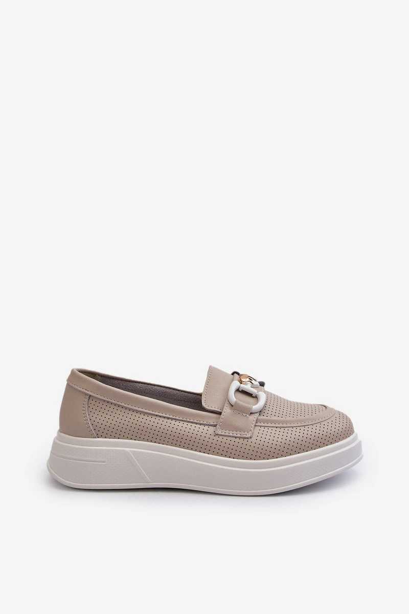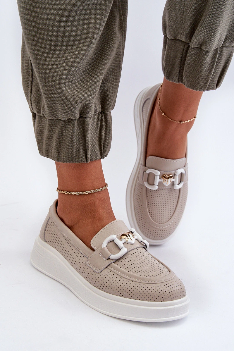 Dámské kožené mokasíny na platformě béžové model 21655725 - S.Barski