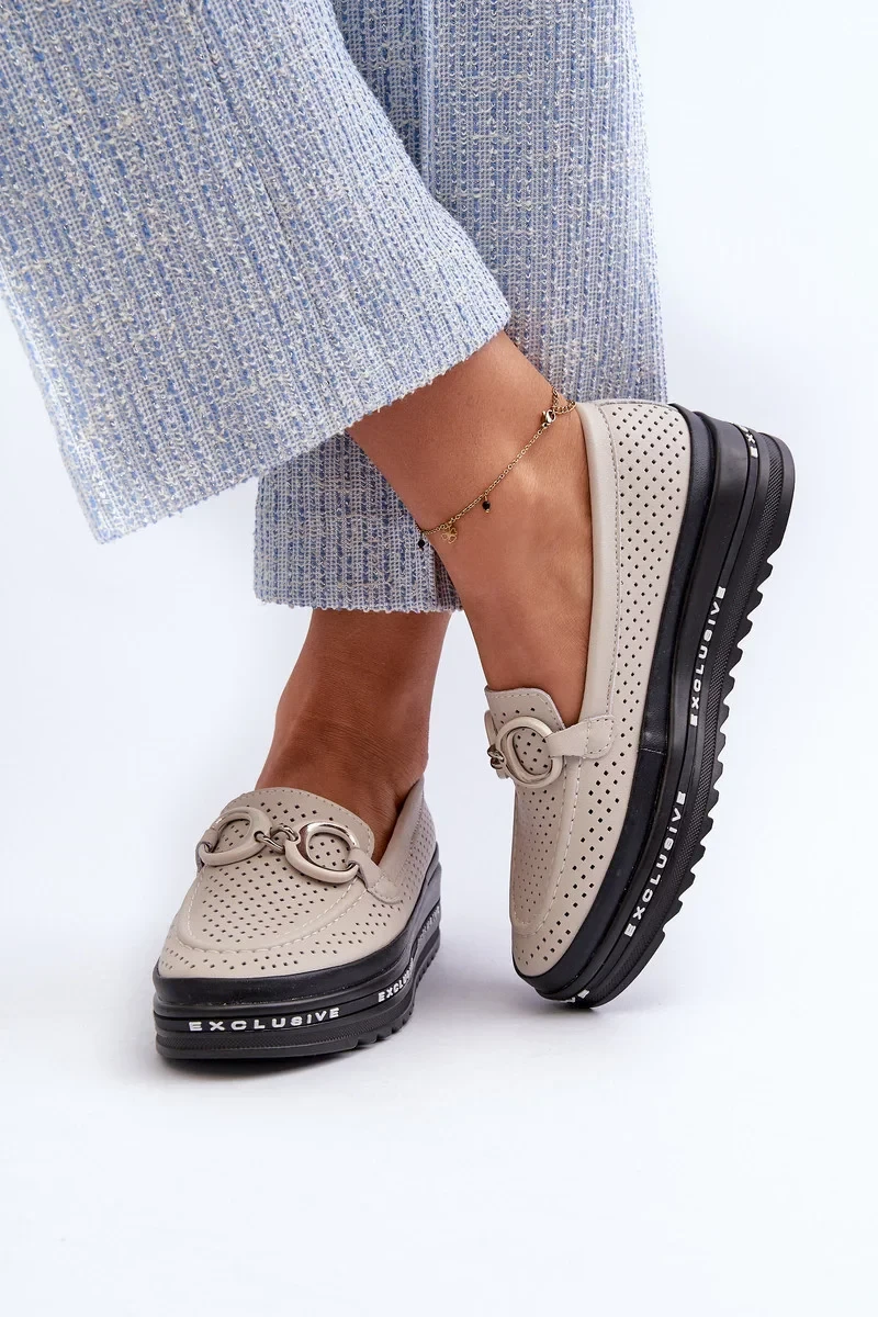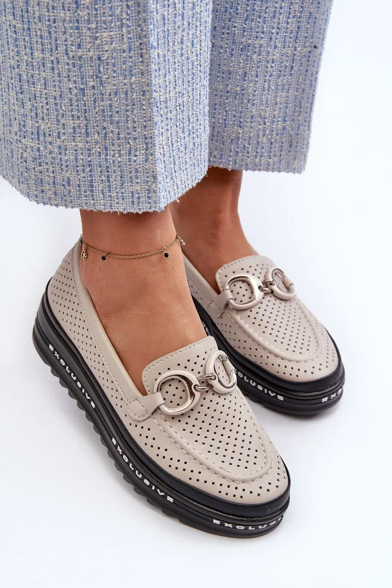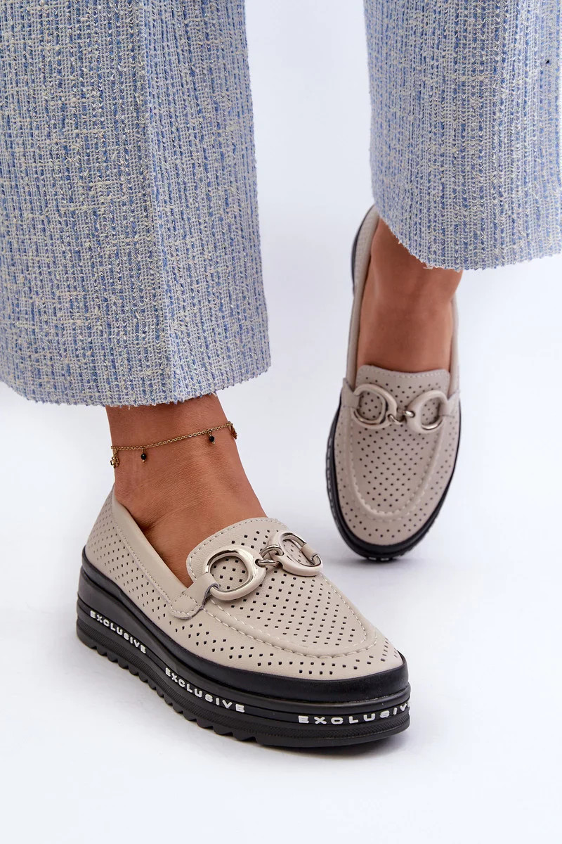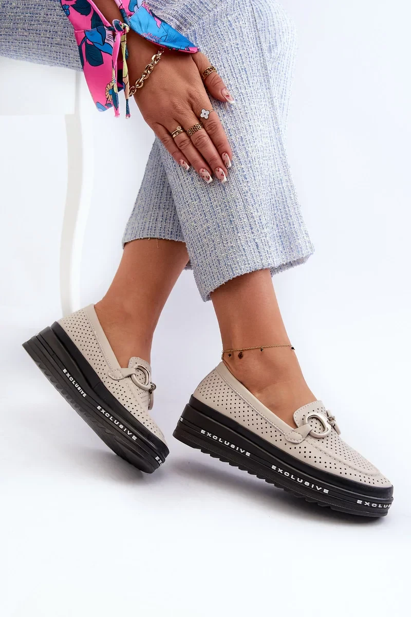 Dámské kožené mokasíny na platformě s ozdobou S.Barski béžová