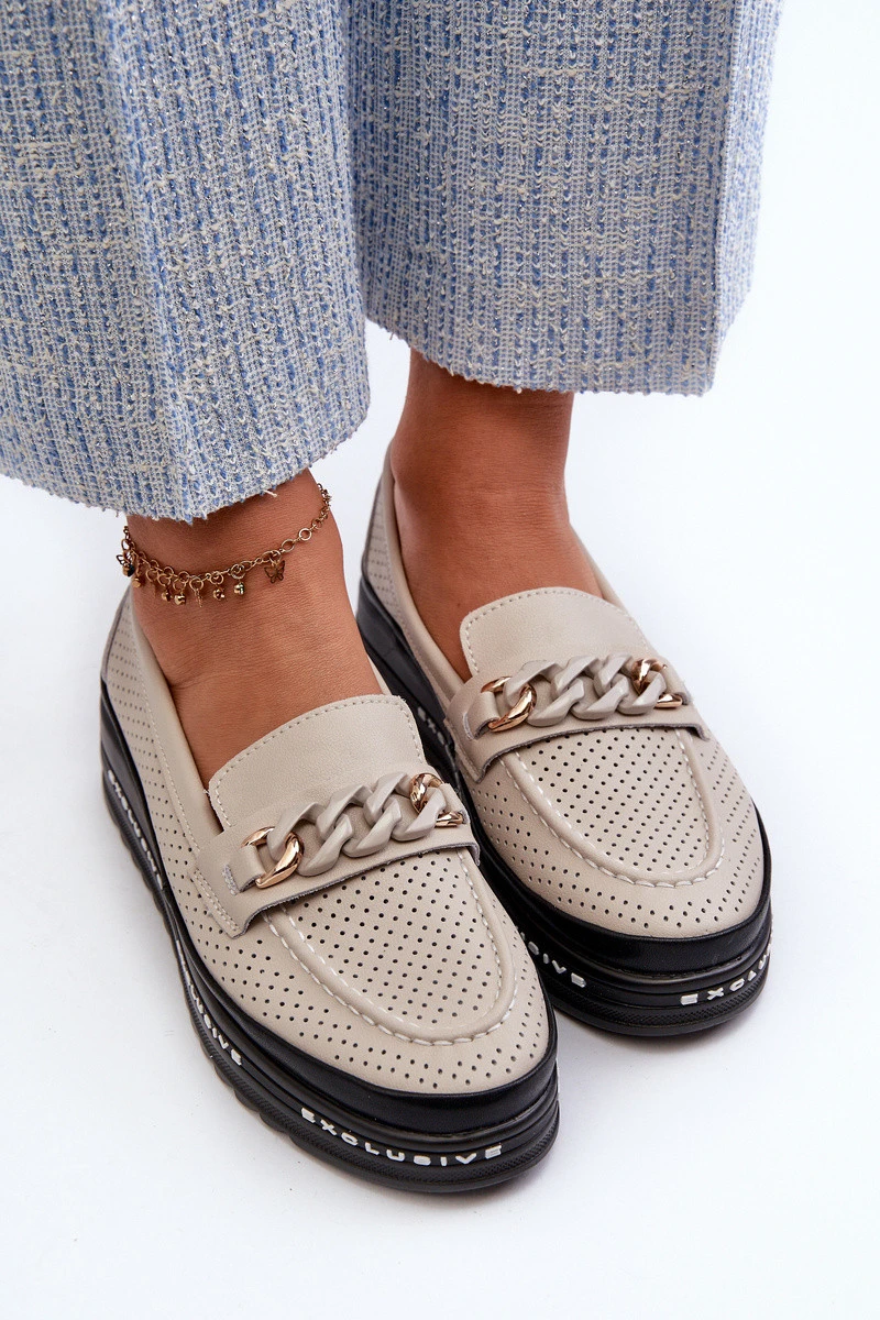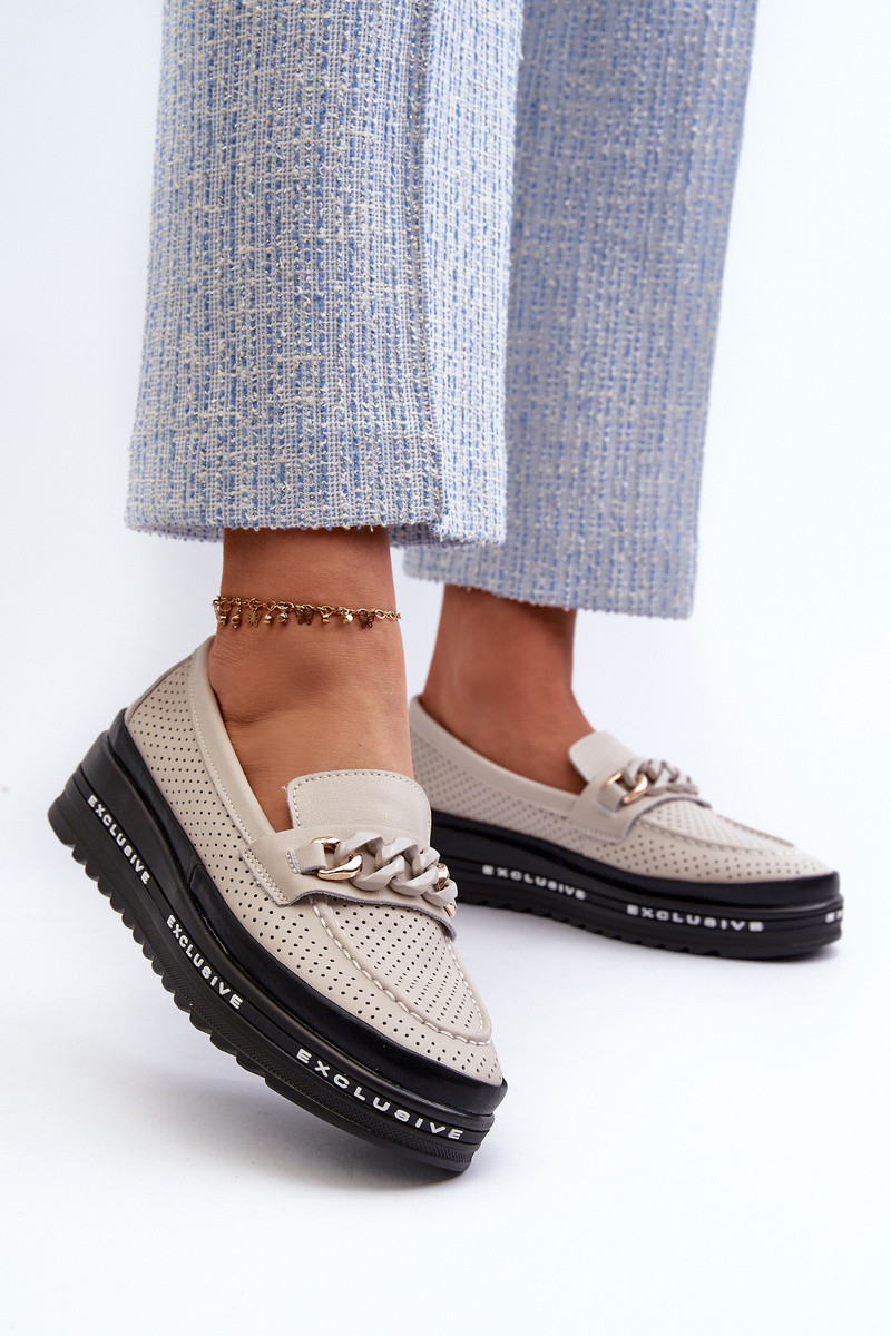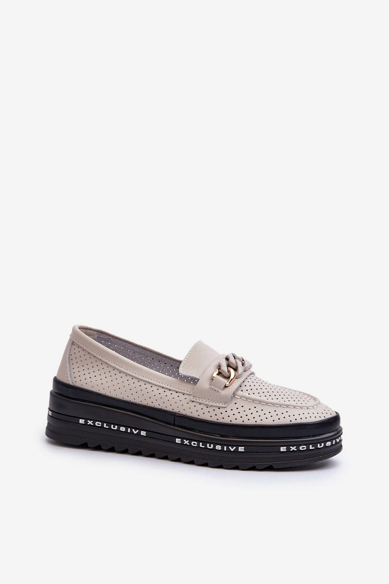 Dámské kožené mokasíny na platformě s řetízkem model 21660132 béžové - S.Barski