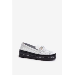 Dámské kožené mokasíny na platformě s řetízkem model 21660139 Bílé - S.Barski